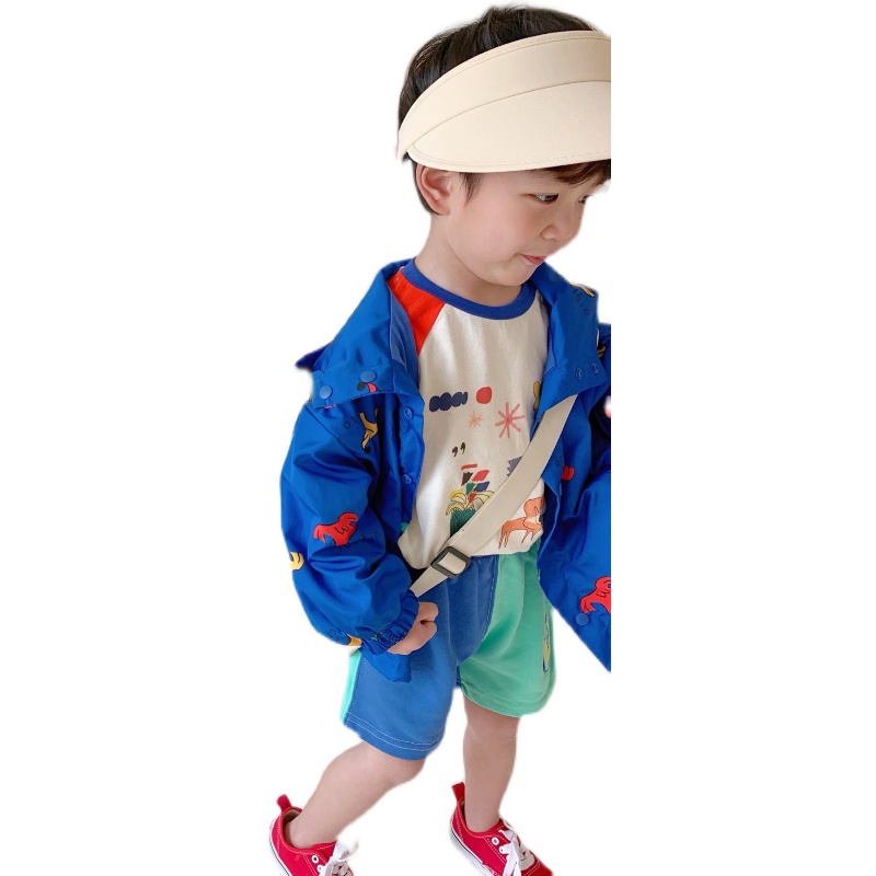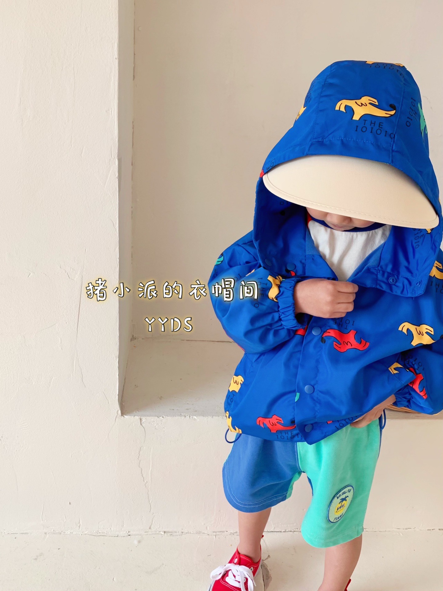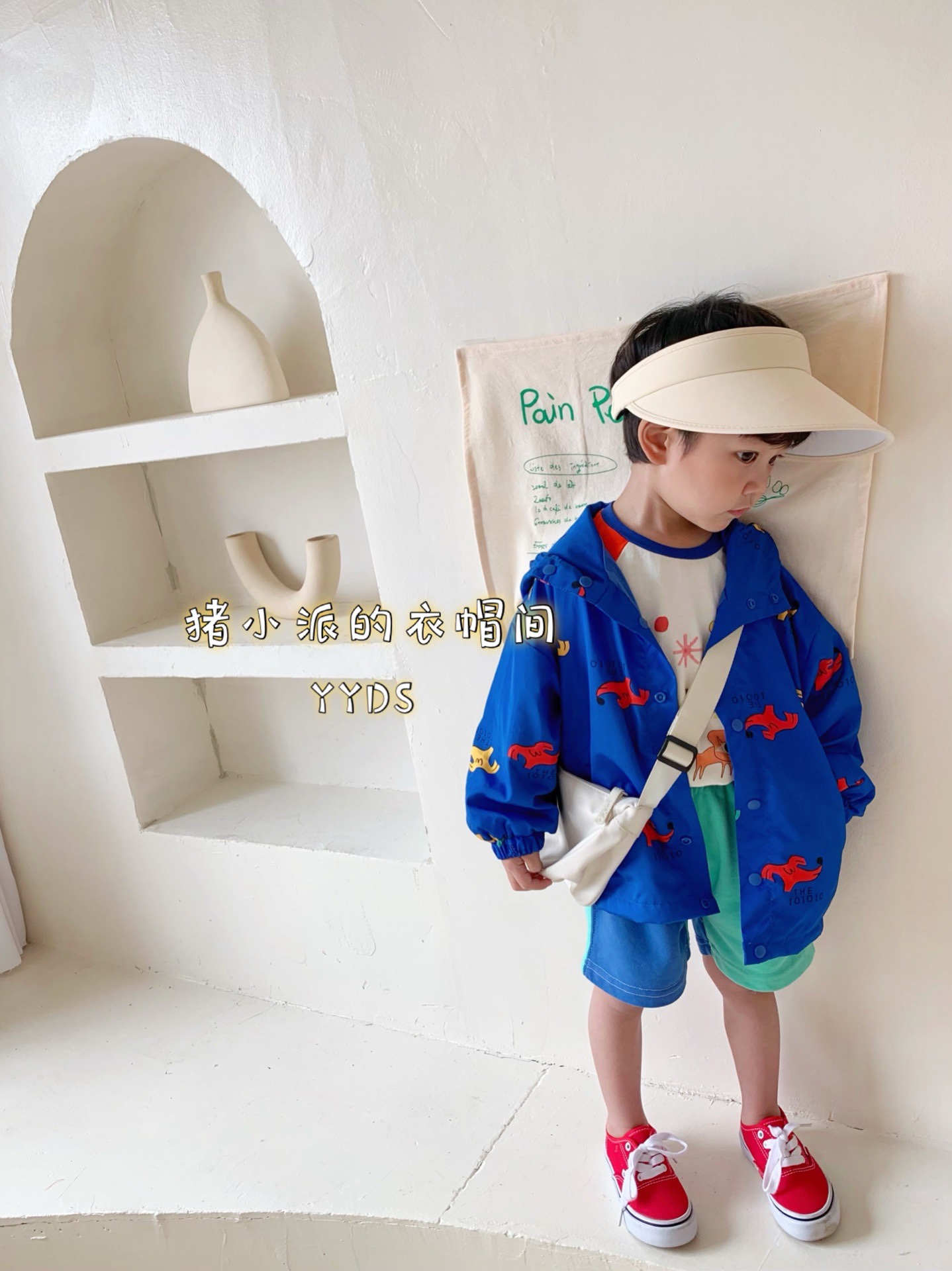 Pig Xiaopai 2022 spring and summer boys' and children's long-sleeved windproof clothing hooded raglan shoulders with ab pants and shorts suit South Korea