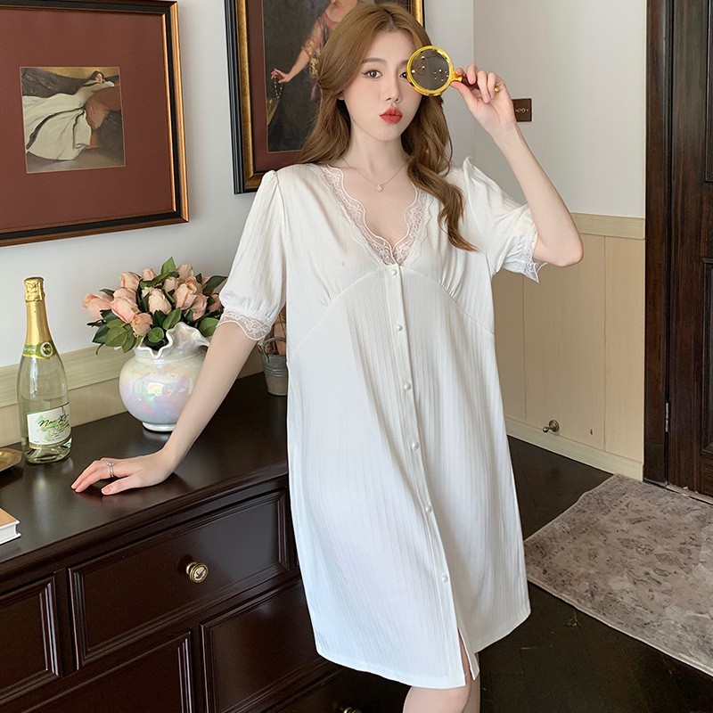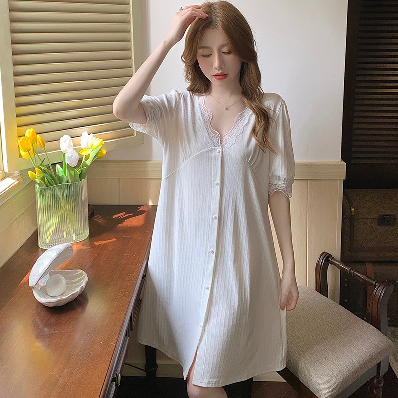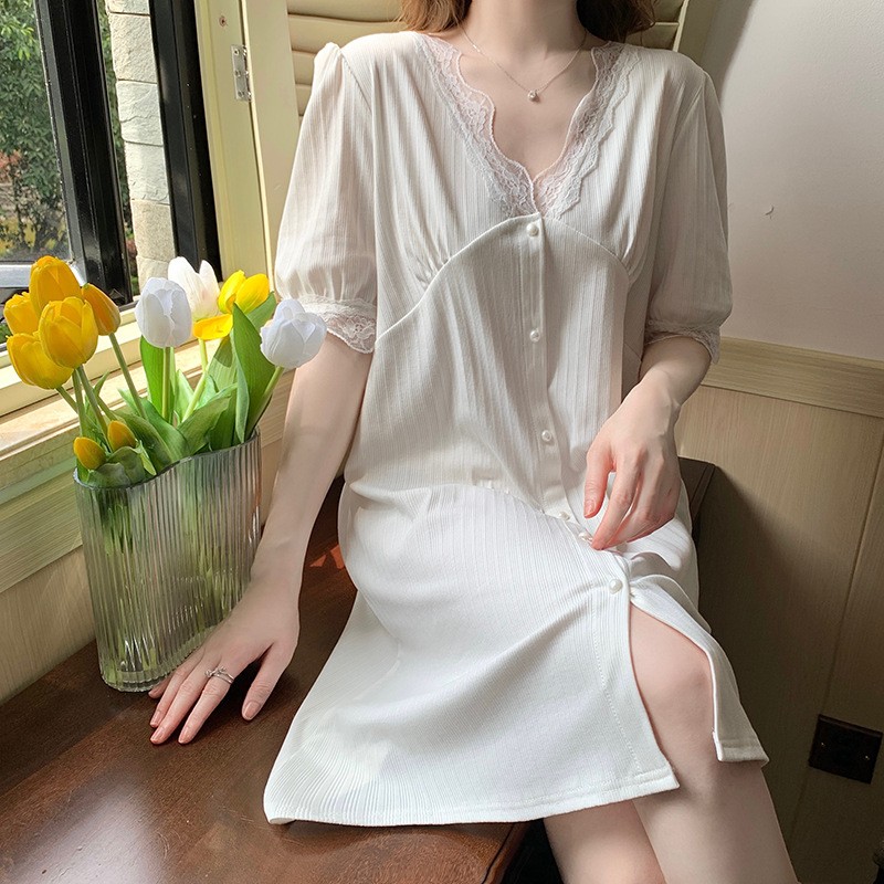 2022 New Sleeping Dress Women's Summer Pure Cotton Sexy Thin fairy Wind Net Red Burst Summer Pure pyjamas