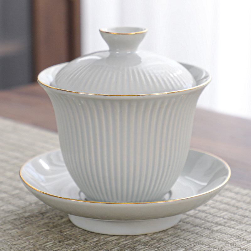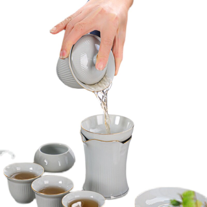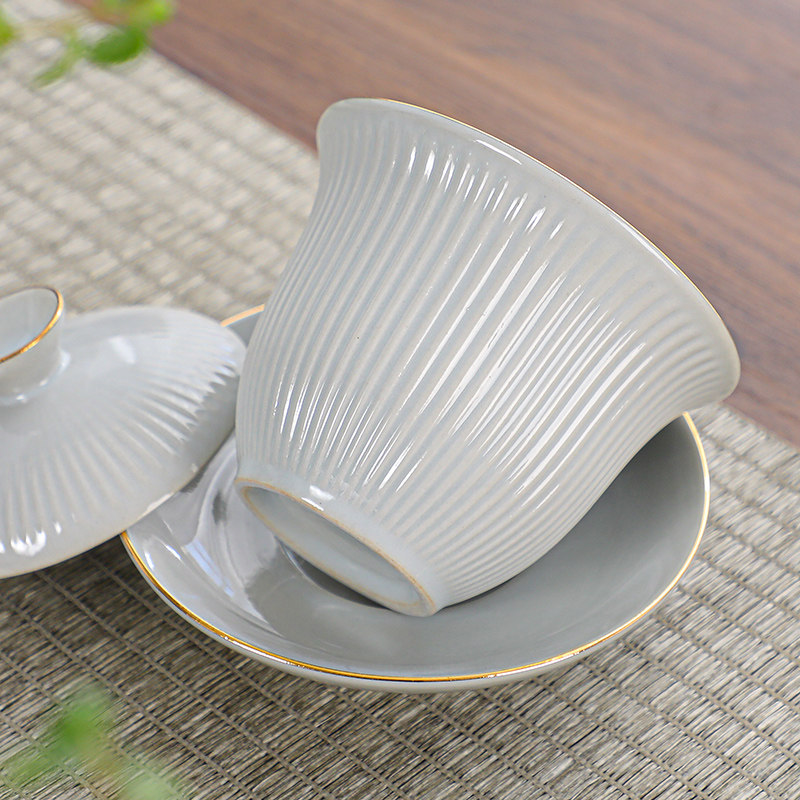 Tea set ceramic cover Bowl Tea Cup Teapot Teapot Home Sketching Brief Chinese Light Lavish Retro Big Suit Grass Wood Ash
