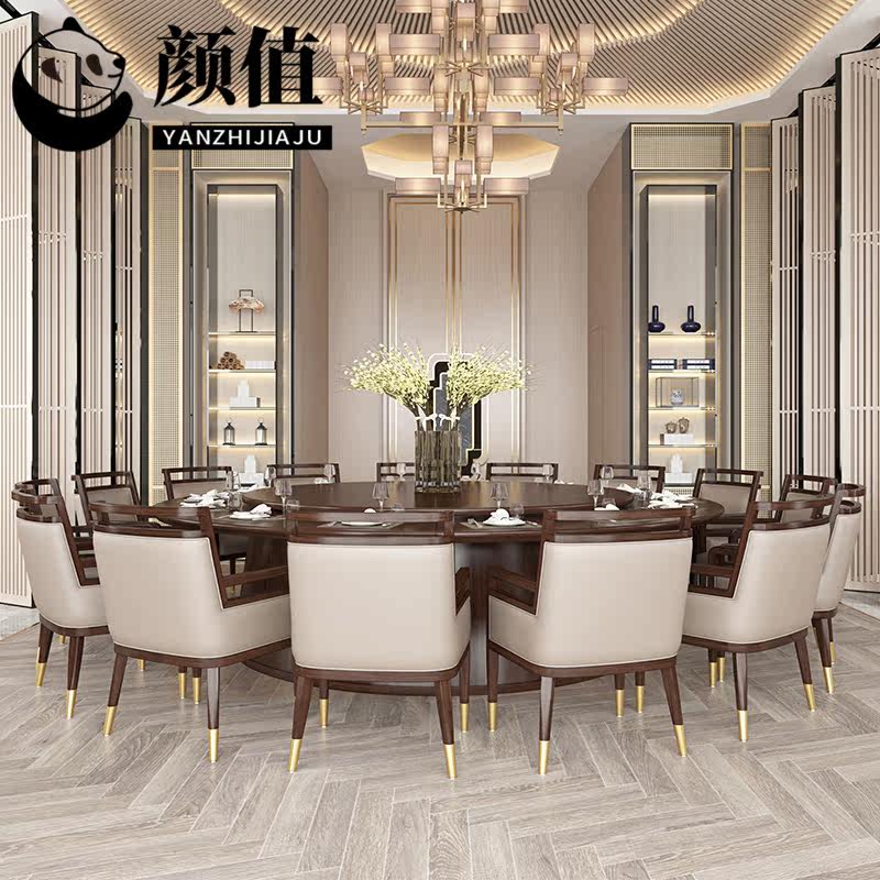 Light Extravagant Modern Minima Hotel Solid Wood Dining Chair Electric Disc Large Table High-end Dining Room With Round Table Customize