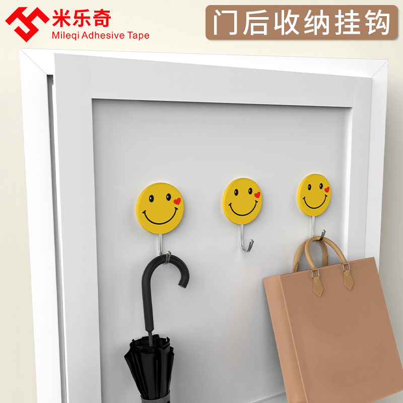 Smiley hook behind the wall door bathroom punch-free hanger strong glue metal hook into the door without trace nails