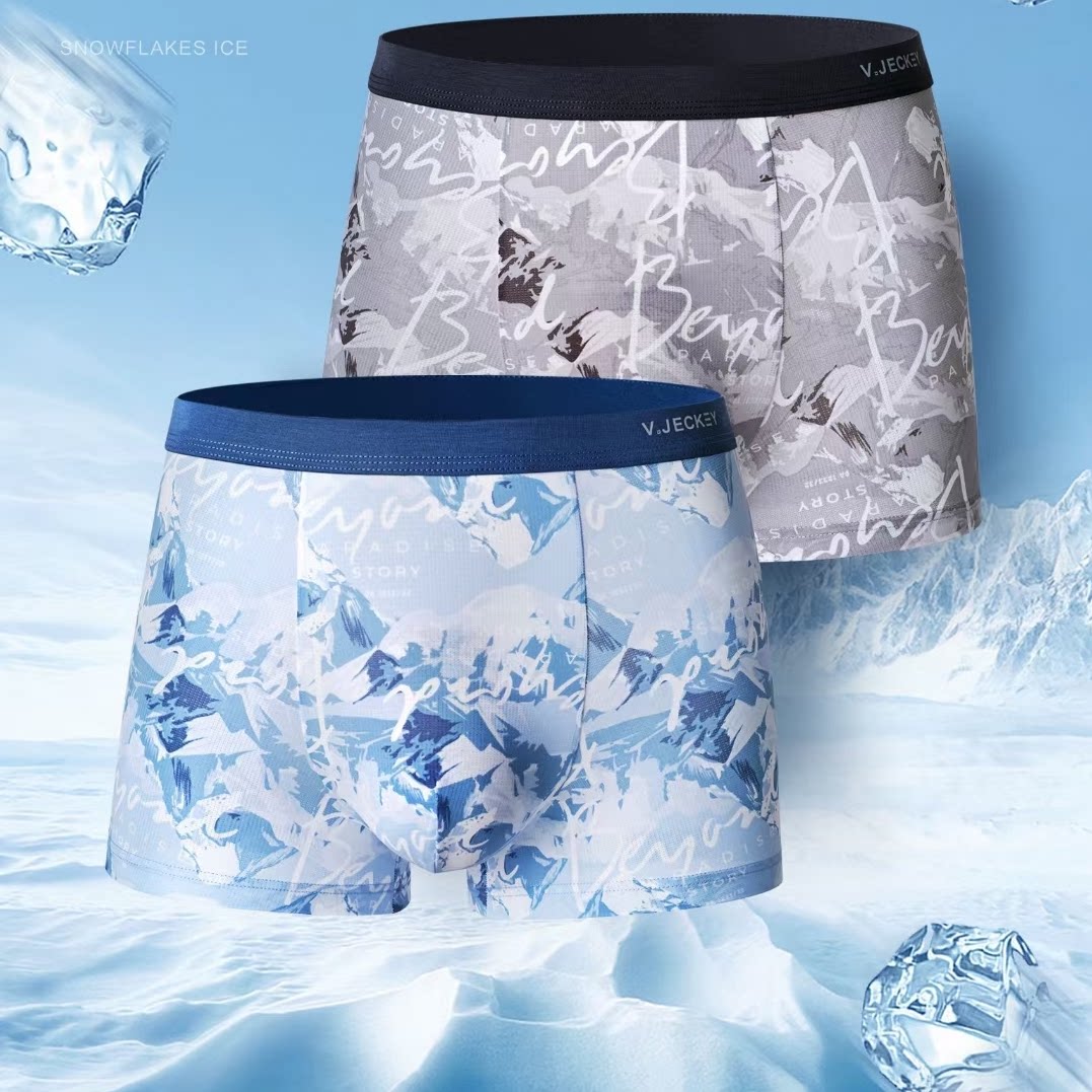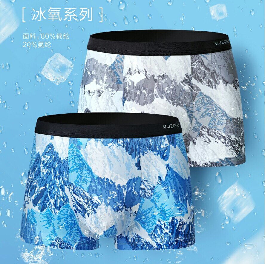 V.JECKEY Wijetch spring summer ice silk men's four-corner underpants print wave fashion boxed breathable youth mid-waist