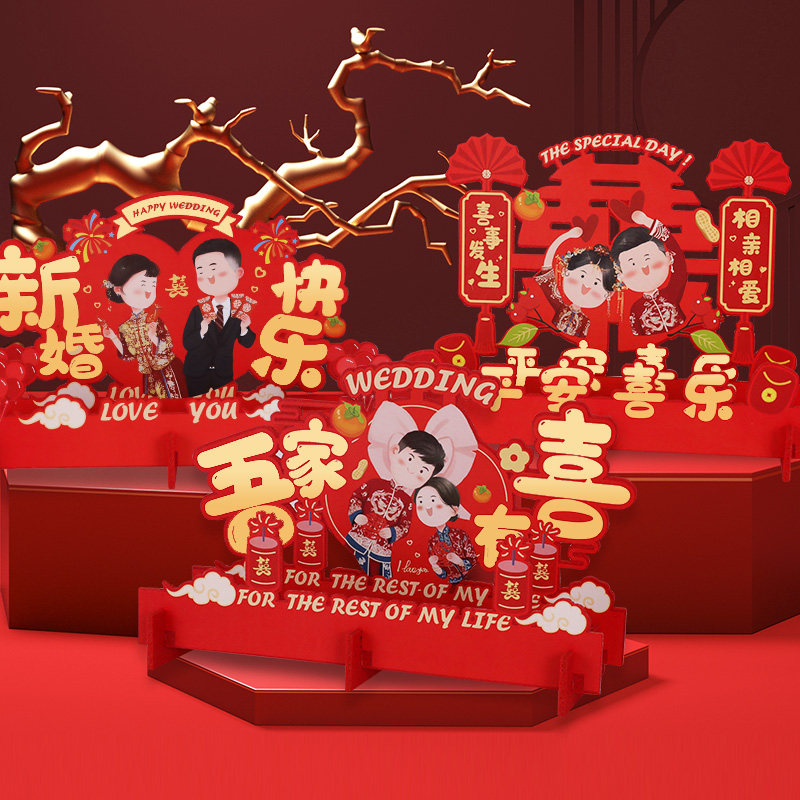 Wedding decorations three-dimensional happy word decorations wedding room creative layout wedding happy word stickers table wedding supplies Daquan
