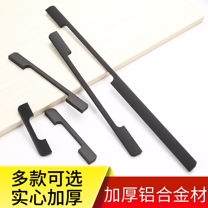 Handle modern minimalist wardrobe one meter long aluminum alloy kitchen cabinet handle black cabinet door single hole handle drawer