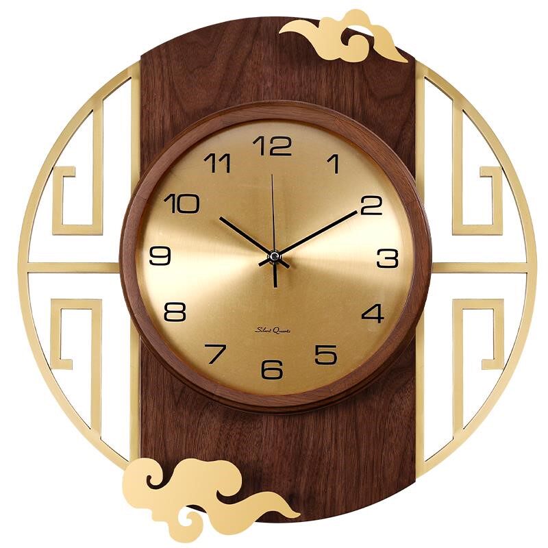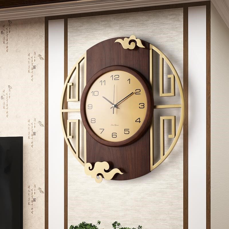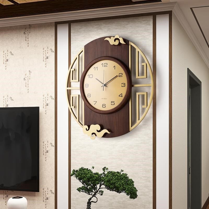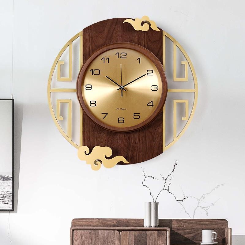New Chinese solid wood decoration hanging bell light luxury quartz pure copper hanging table living room hanging wall clock home Wanyear calendar watches