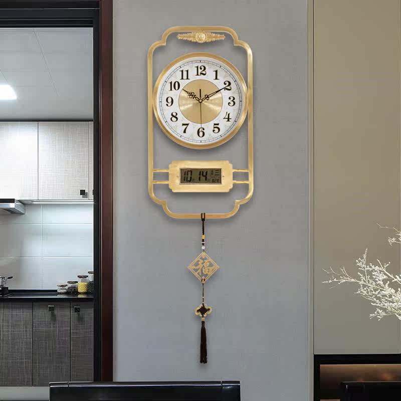 Pure copper light luxury watch hanging clock Living room Home Fashion European style clock Living room Creative personality New Chinese quartz clock