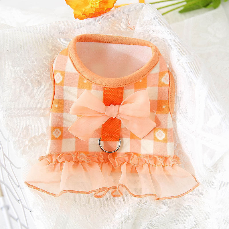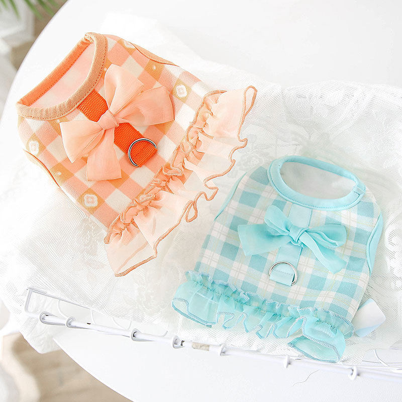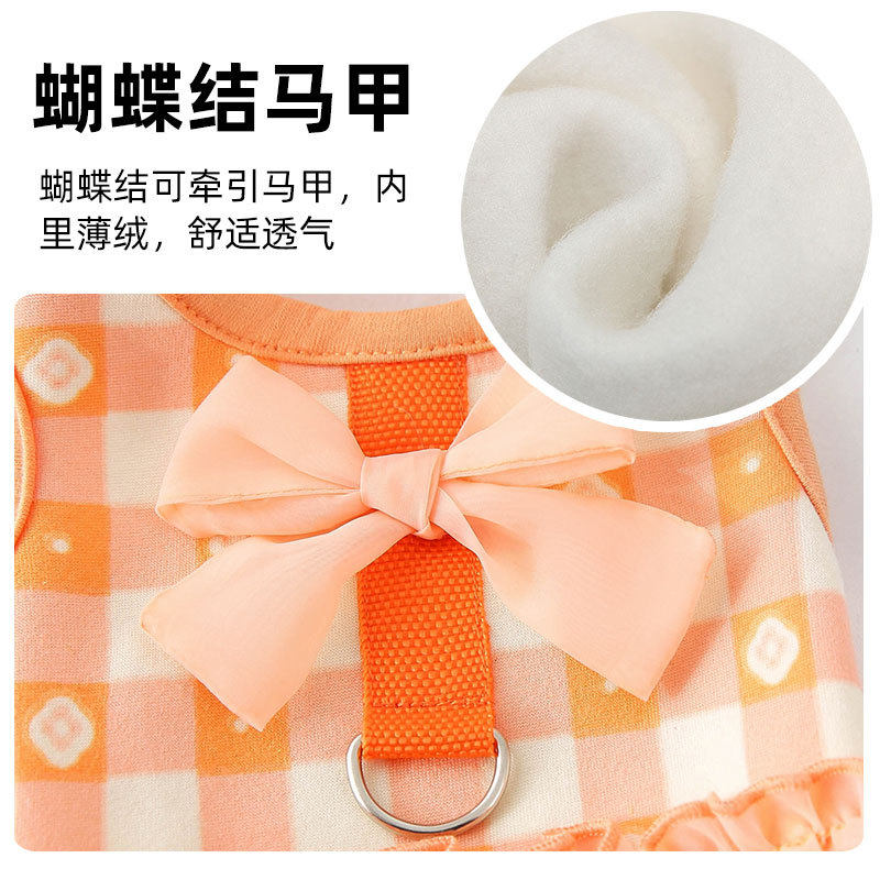 Spring new kitty vest waistcoat butterfly knot grid traction little pooch kitty clothing pet clothing
