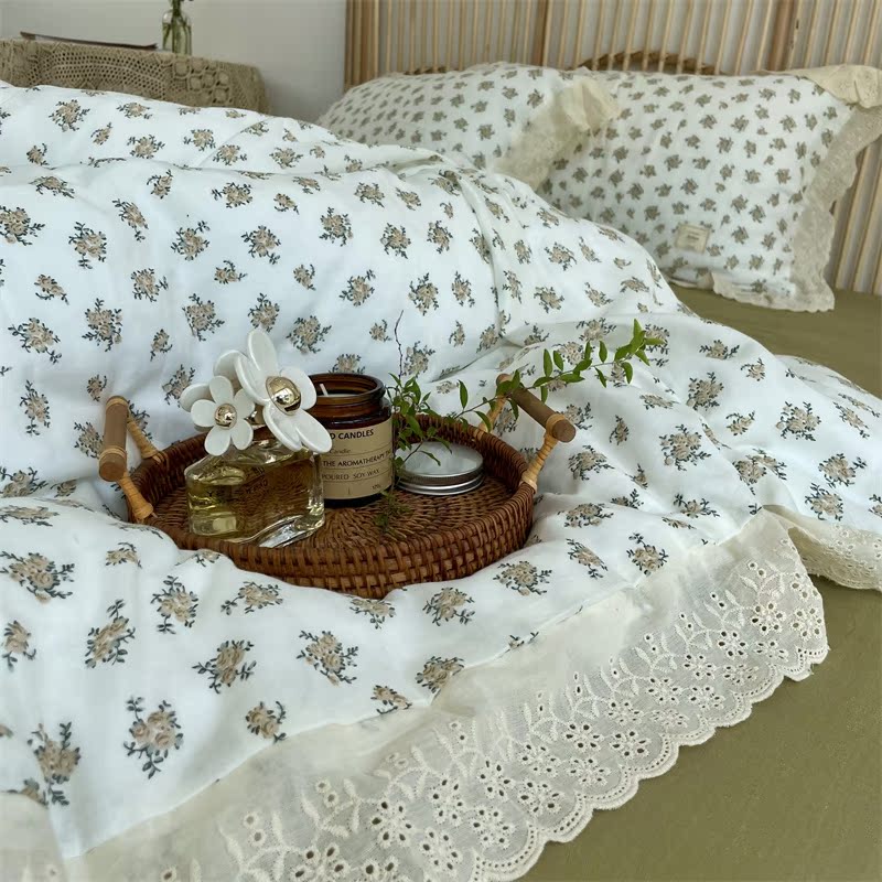 French retro small floral A class spring and summer soft double-layer gauze cotton sheets four-piece cotton bedding