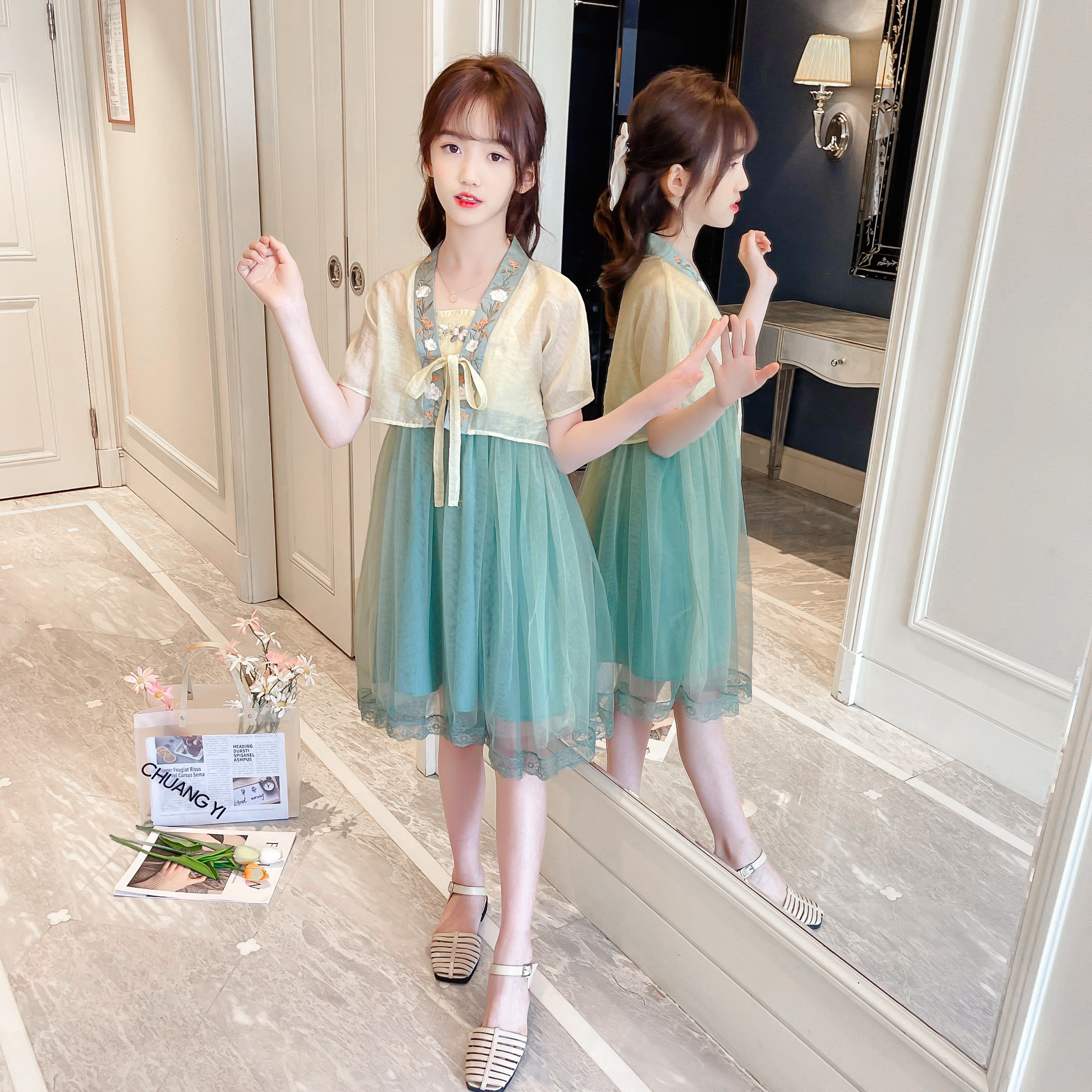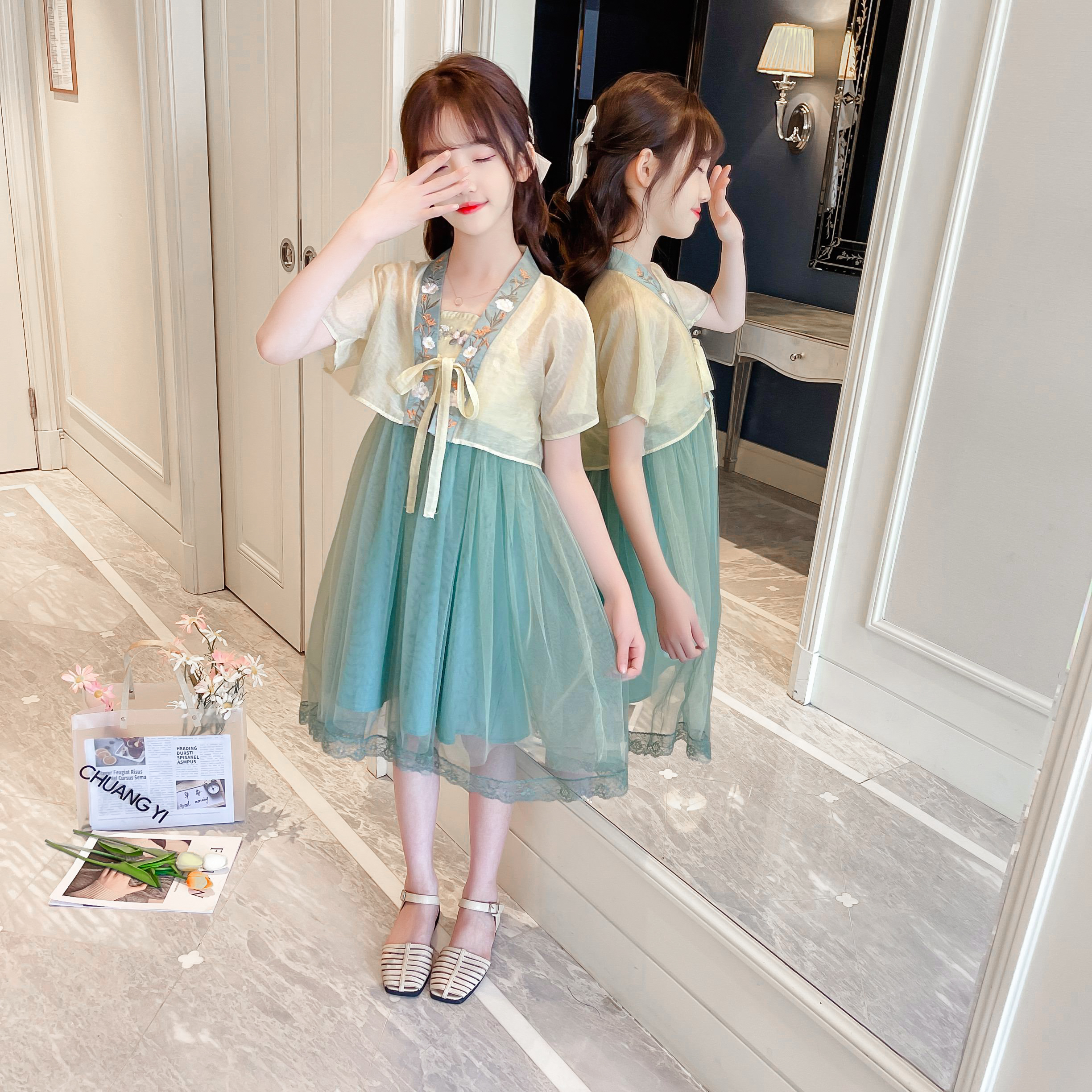 Hanfu Girl's Summer 2022 New Children's Ancient Dress Superfairy Little Girl Foreign Dress Chinese Craze in Tang Costume Summer Clothing