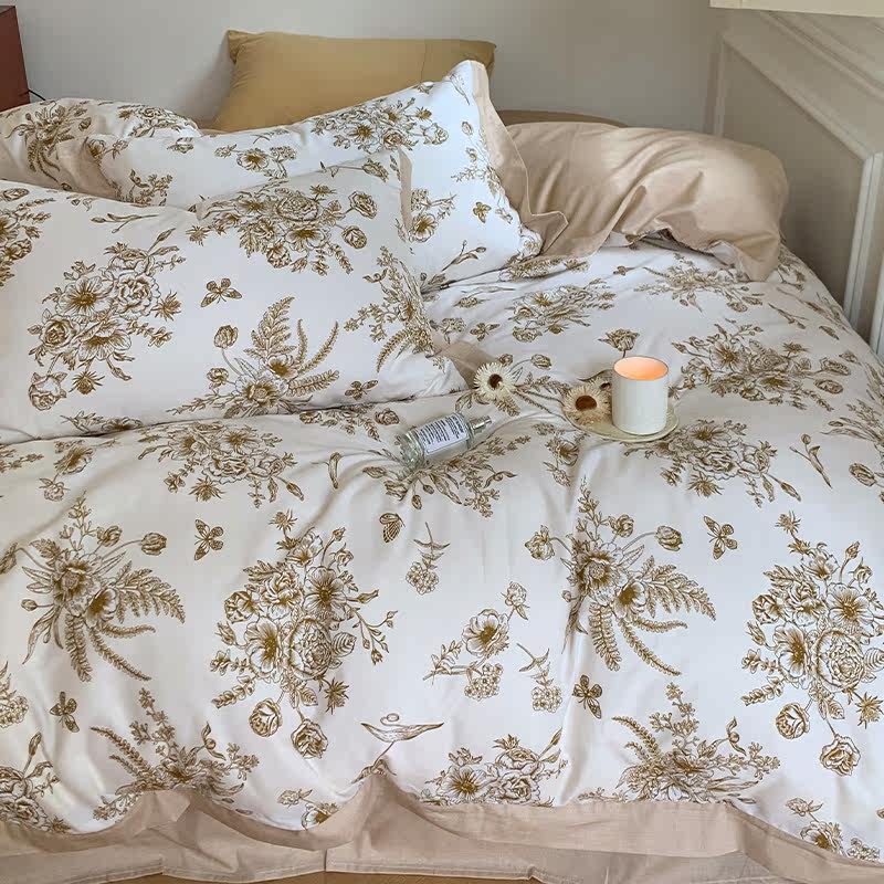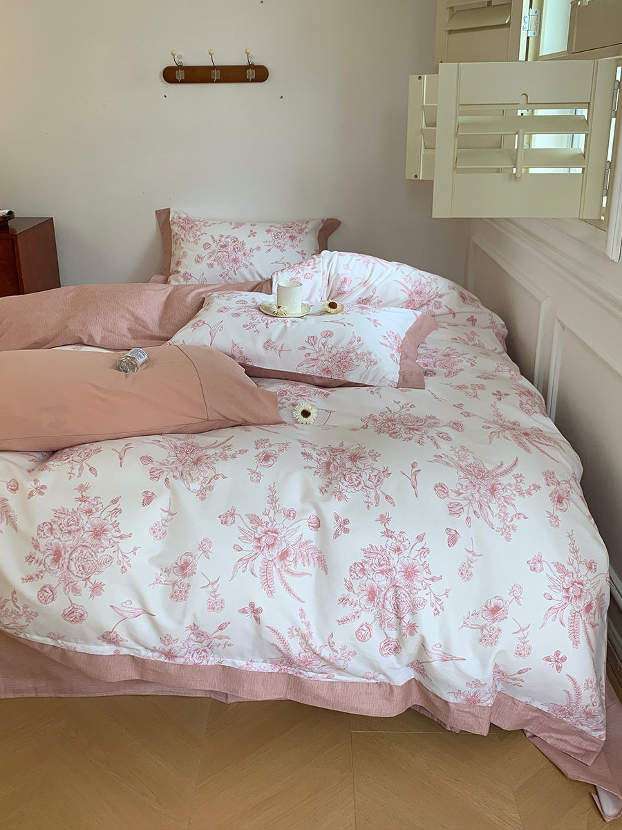 Spring retro style Romantic Fields Garden Four Pieces Full Cotton Pure Cotton Rose Ladies Wind Bed Linen Quilt Cover Three Sets
