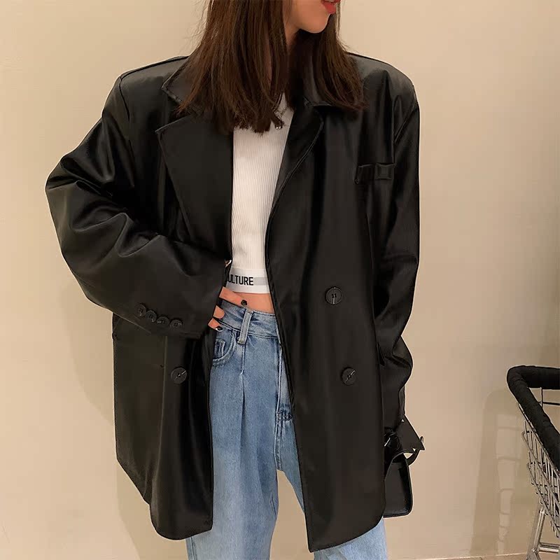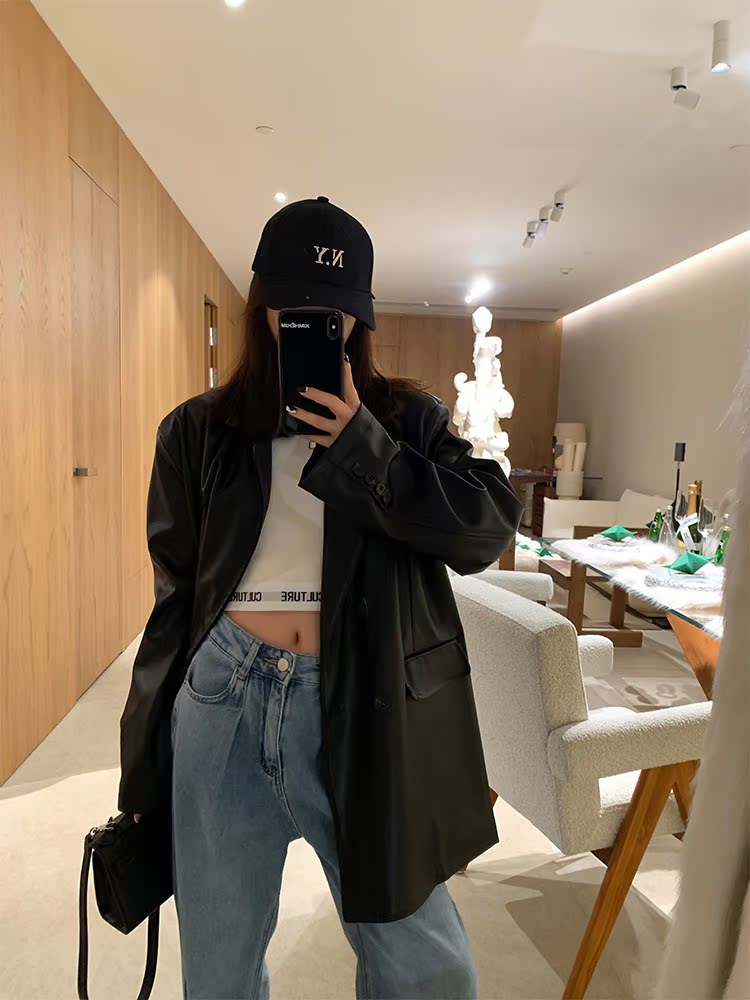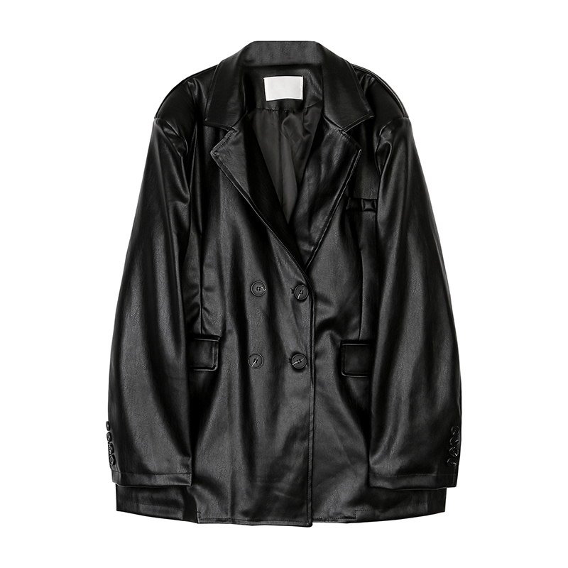 Small Read Custom Black Leather Coat Woman 2022 Spring Autumn New Advanced Sensation Pu Leather Loose Locomotive Jacket Jacket