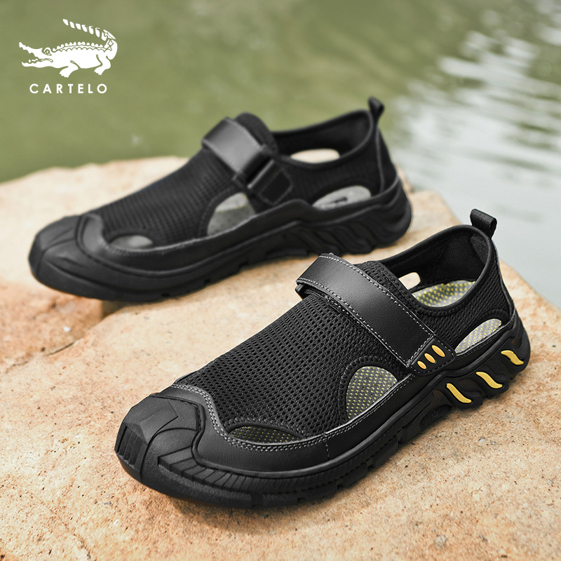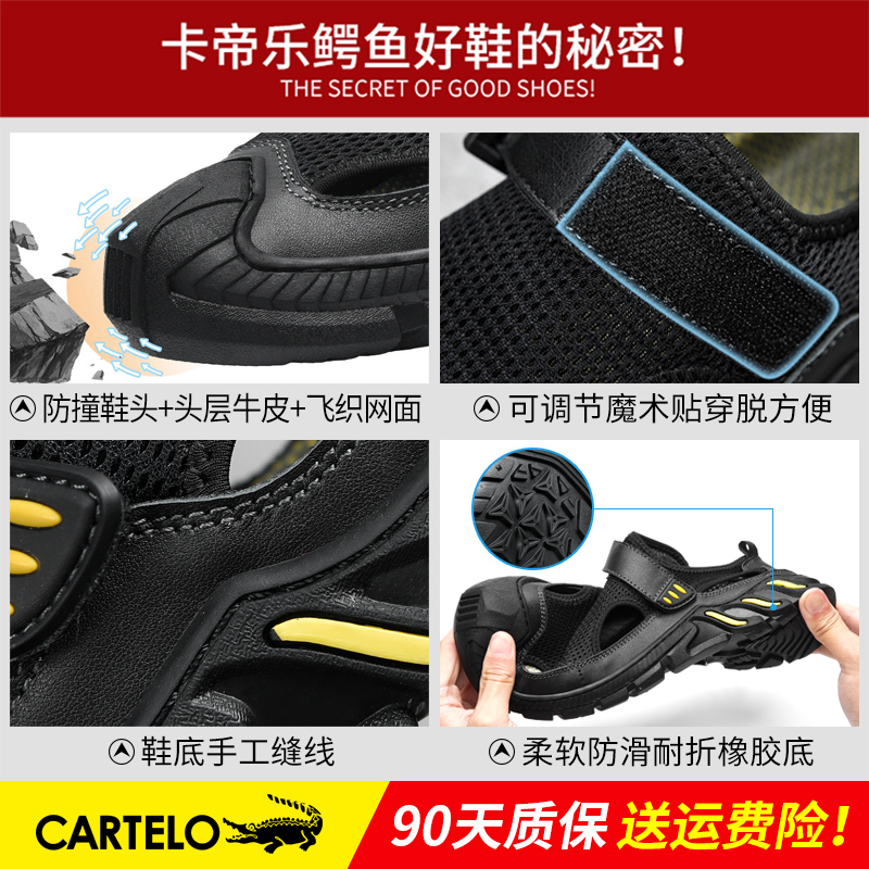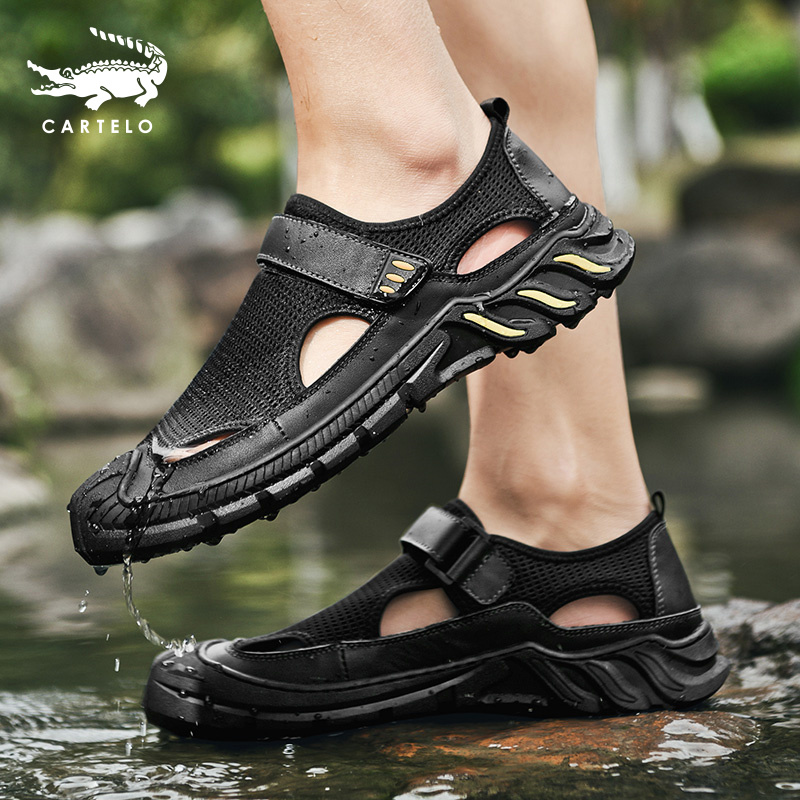 Crocodile Sandals Men's Summer Trend Genuine Leather Driving Shoes 2022 New Black Men's Net Face Breathable Beach Shoes