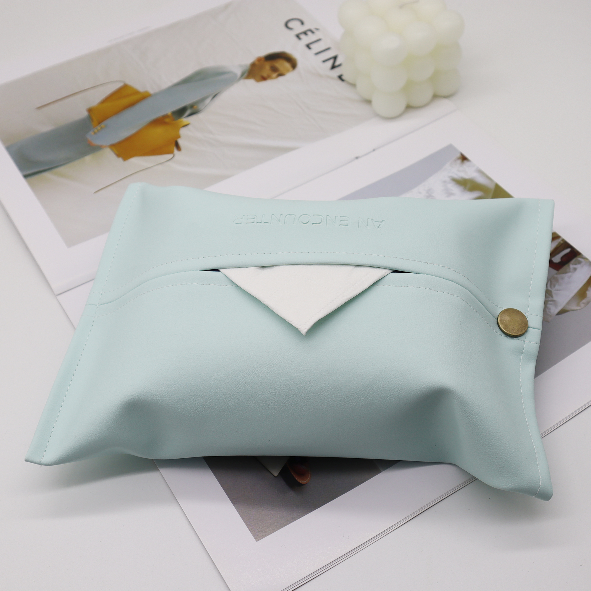 Avocado green creative simple paper towel set pu leather mint blue ins paper towel set