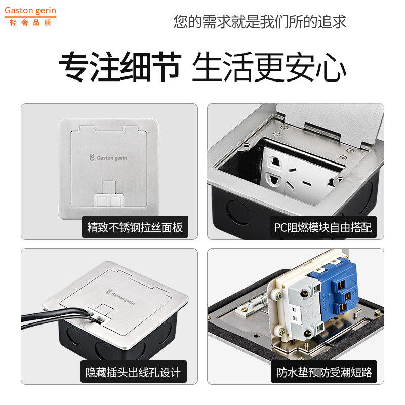 Open Type Stainless Steel Invisible Ground Socket Seven Holes Five Holes Slim Hide Plug Ground Home Waterproof Floor Insert