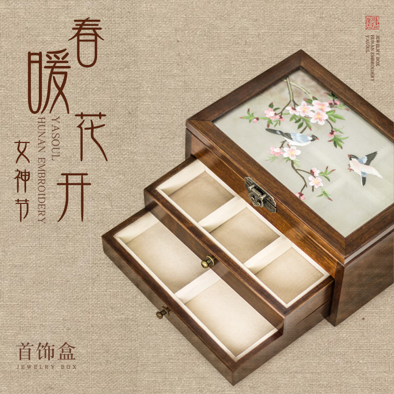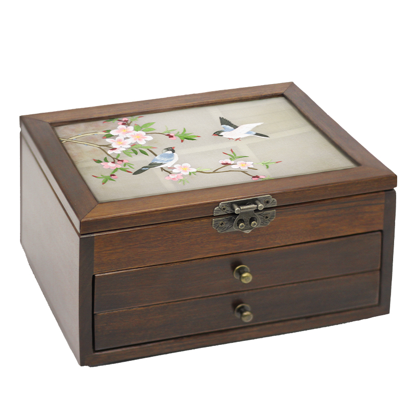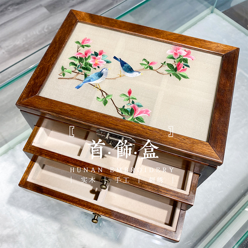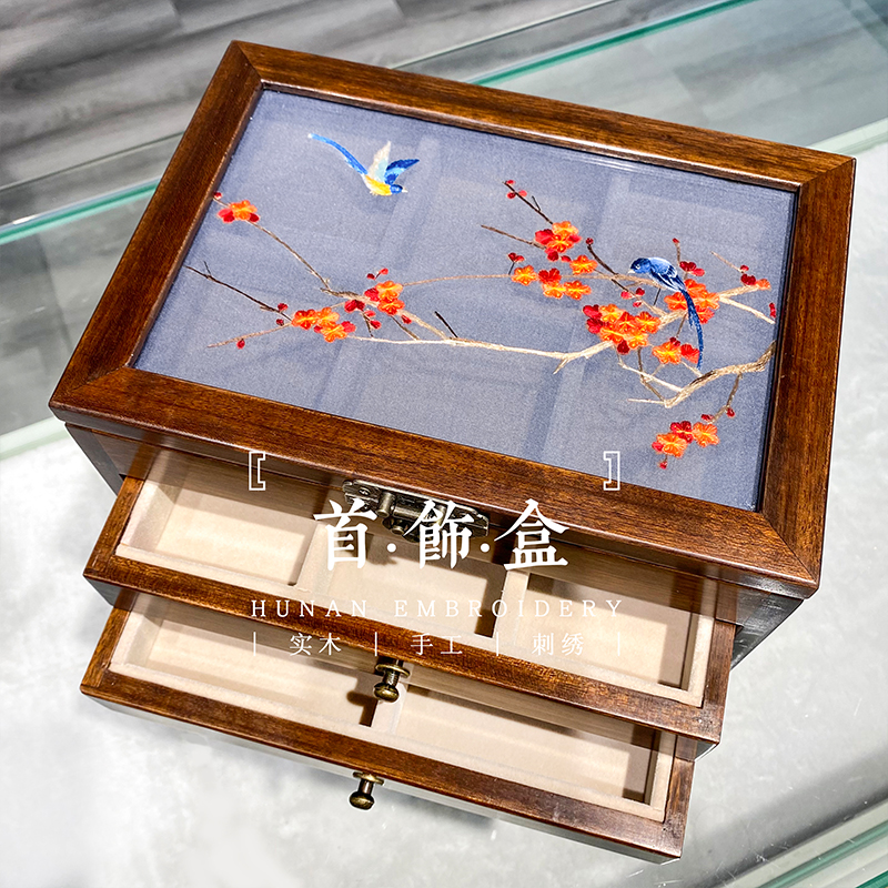 Elegant Embroidery set Xiang embroidered handmade embroidered double face embroidered with red wood walnuts upscale multilayer containing the first decoration box presents