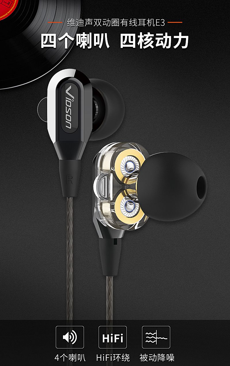 Double moving lap Heavy low sound cannons headphones wired in ear style with wheat round holes suitable for Apple Huawei Xiaomi phones