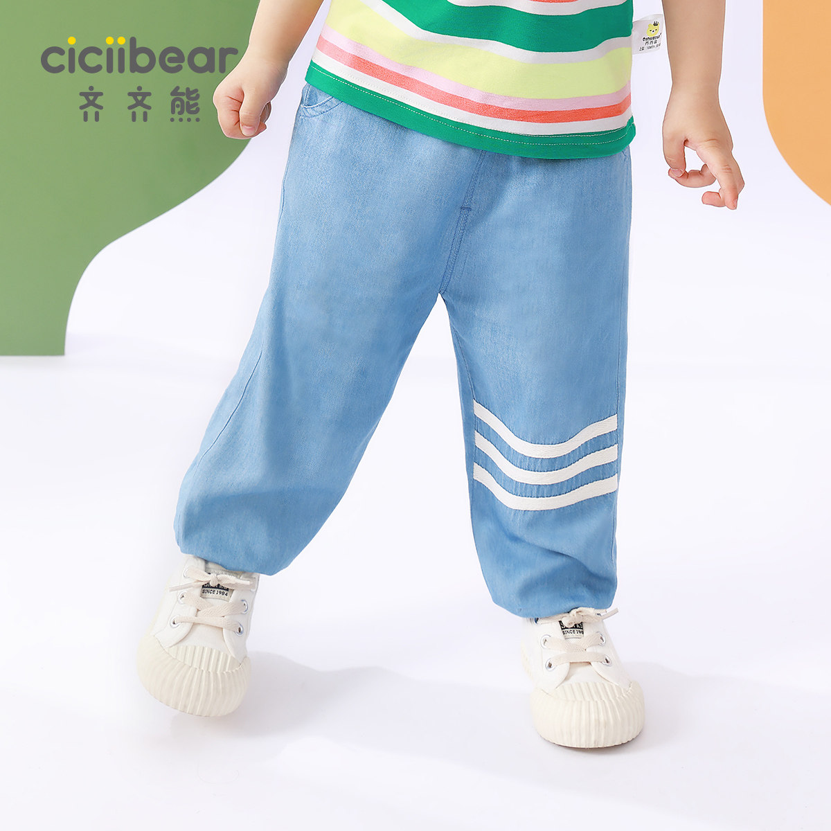 Zizi Bear Boy Anti-mosquito Pants Baby Pants Summer Thin children Imitation Sky Silk Jeans Boy Sport Long Pants