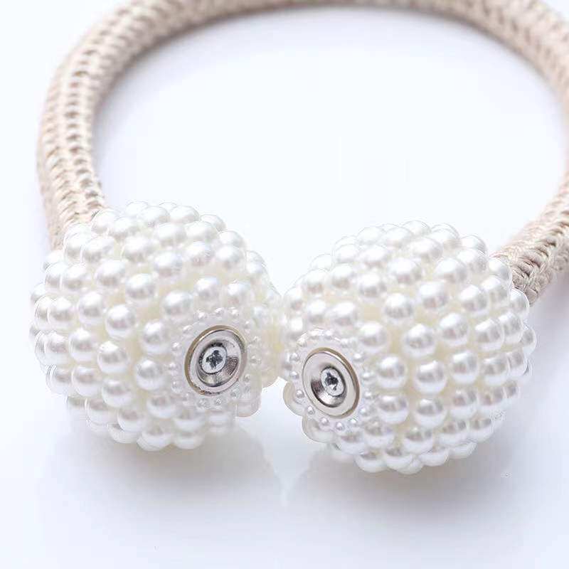 Student dormitory bed curtain pearl magnetic buckle curtain strap creative lace decoration free punching wild magnet buckle rope