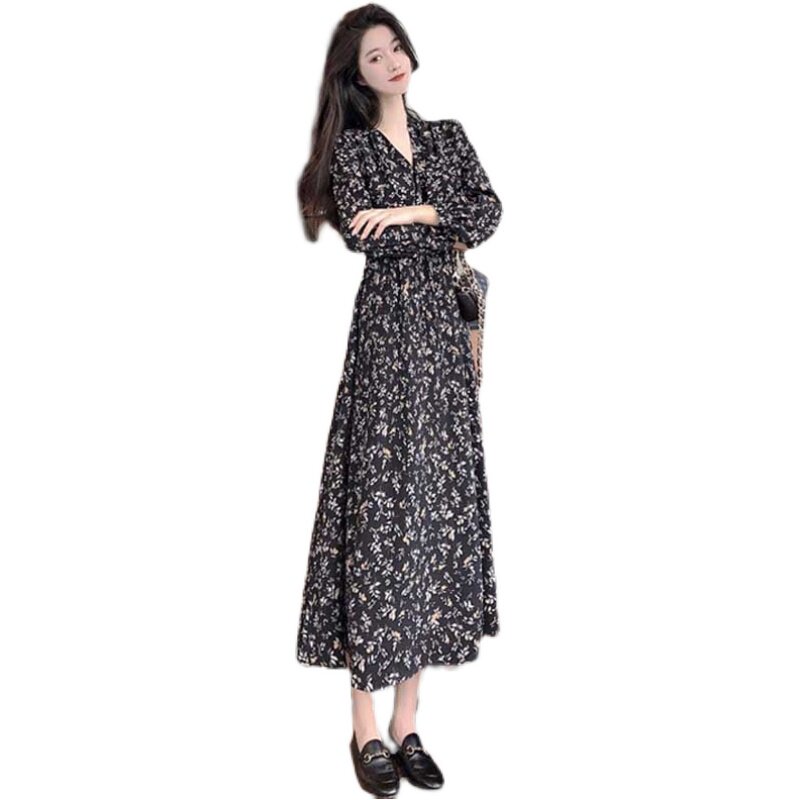 Mularsa method black crushed floral dress women 2022 spring new cashew slim temperament snowspun long dress