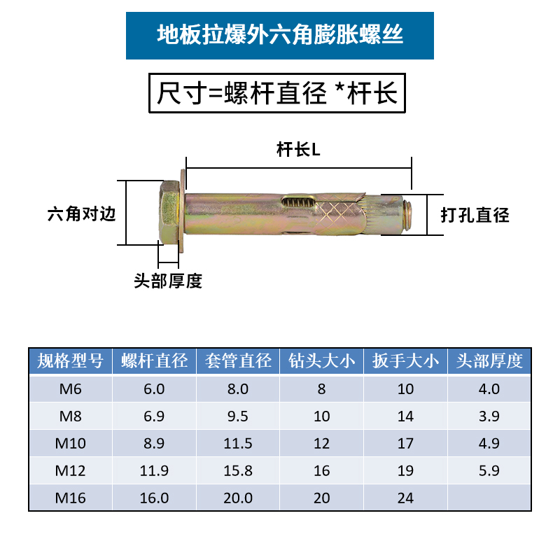 The external hexagonal expansion screw explosion built-in flux screw tube air conditioning and pull-out M6M8M10M12