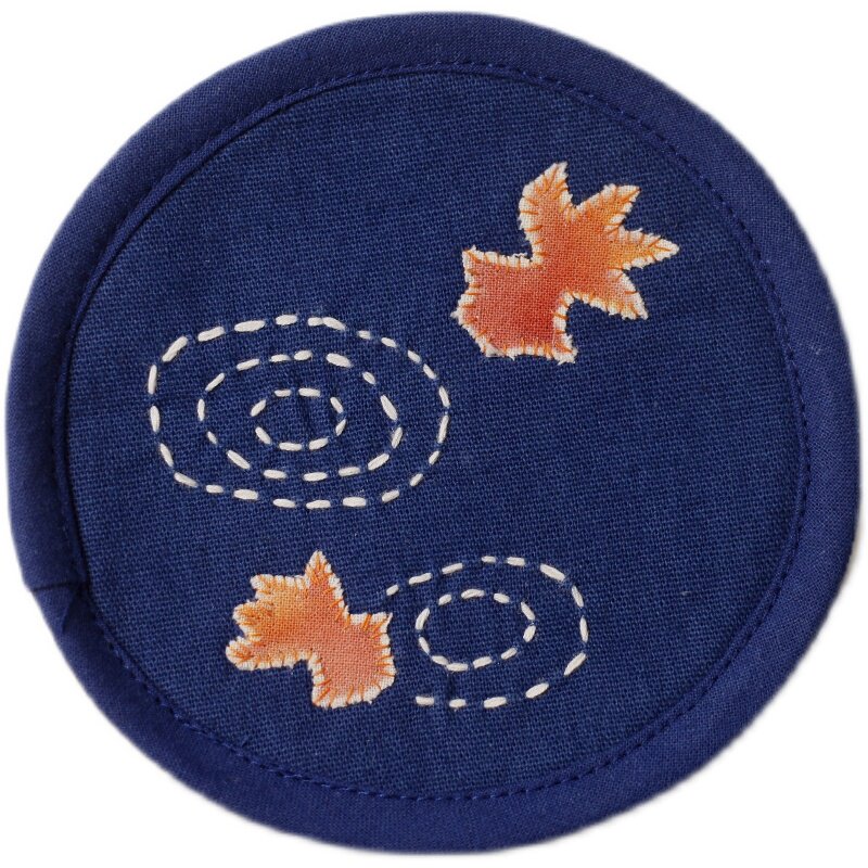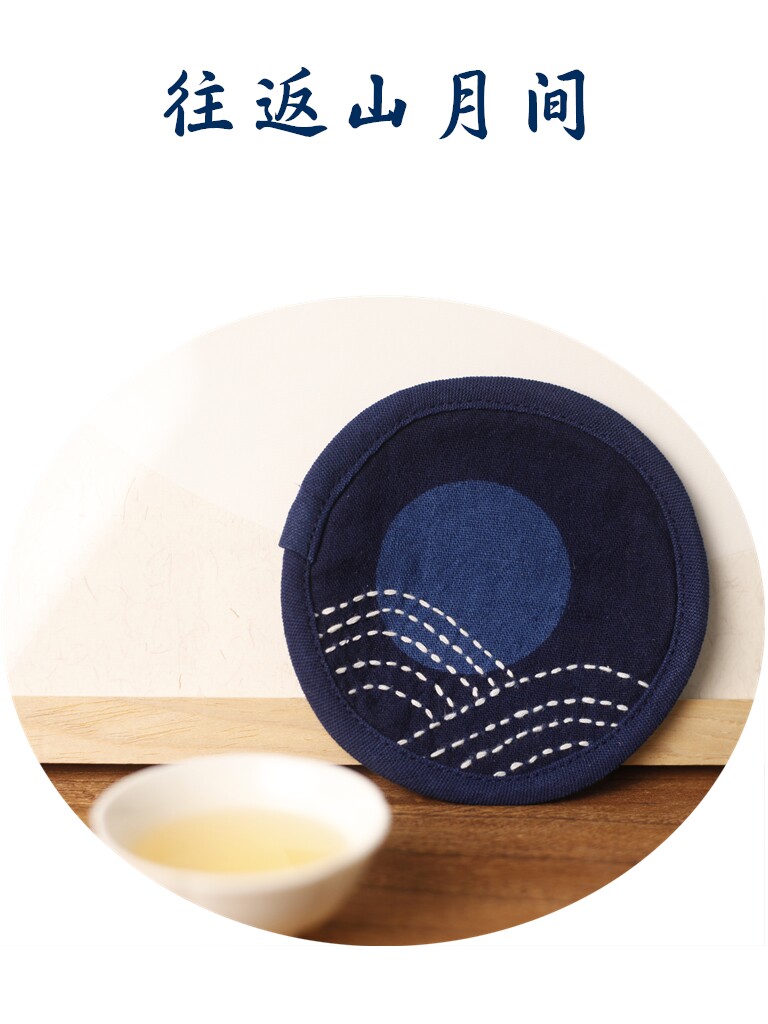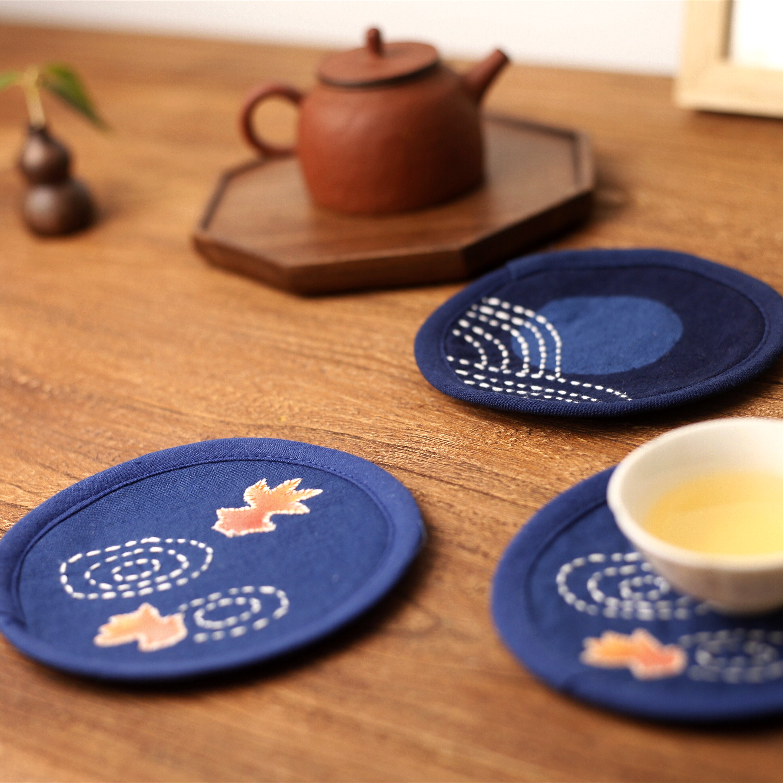 Blue dyed cloth handmade coaster pure cotton linen art sashiko embroidery Chinese style retro small fresh living room heat insulation pad