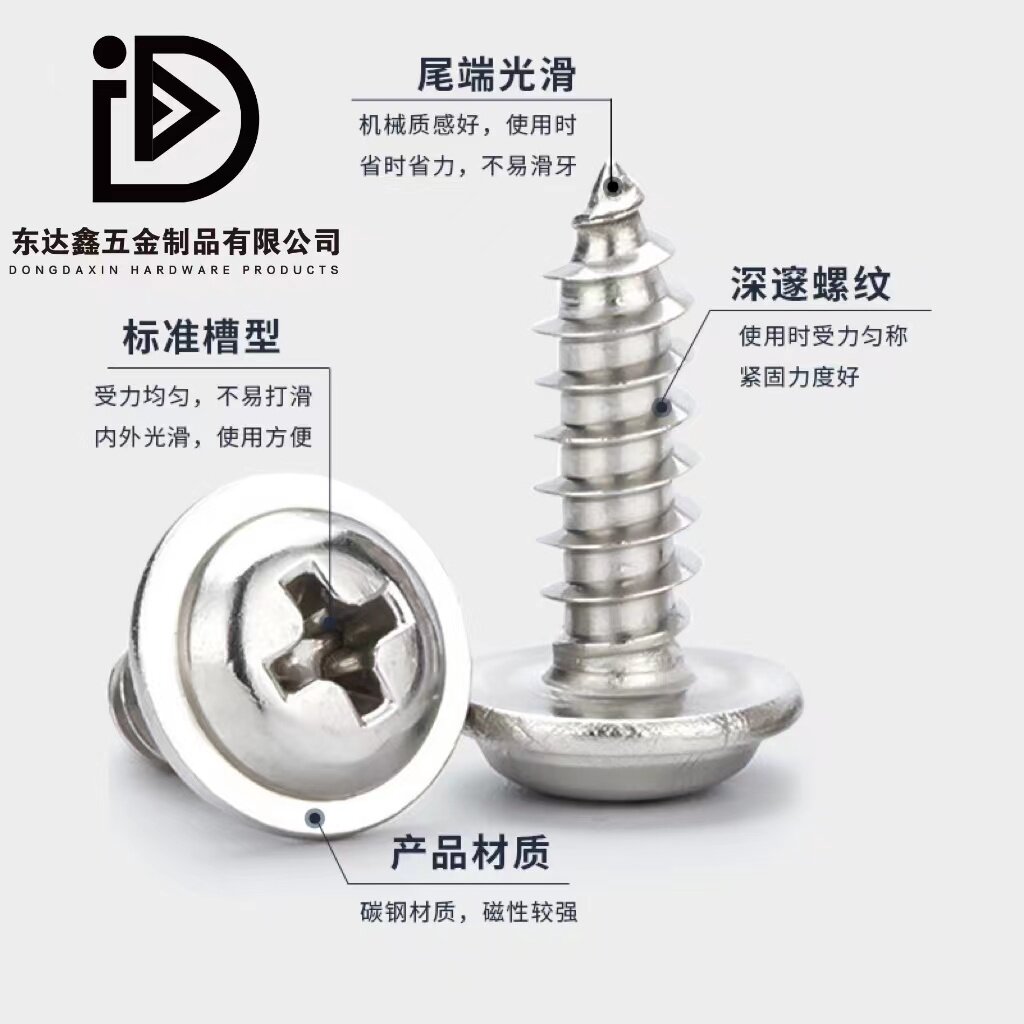 Carbon steel cross round head self-tapping screw with pad PWA pan head self-tapping electronic screw nickel-plated black M2 0M2 3