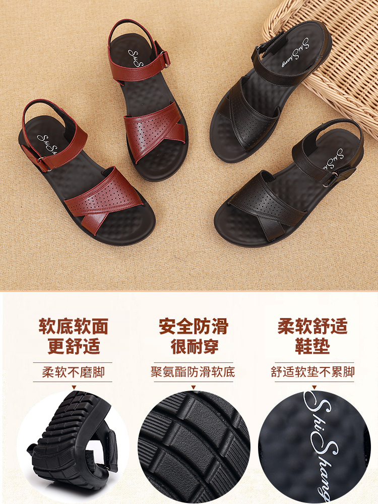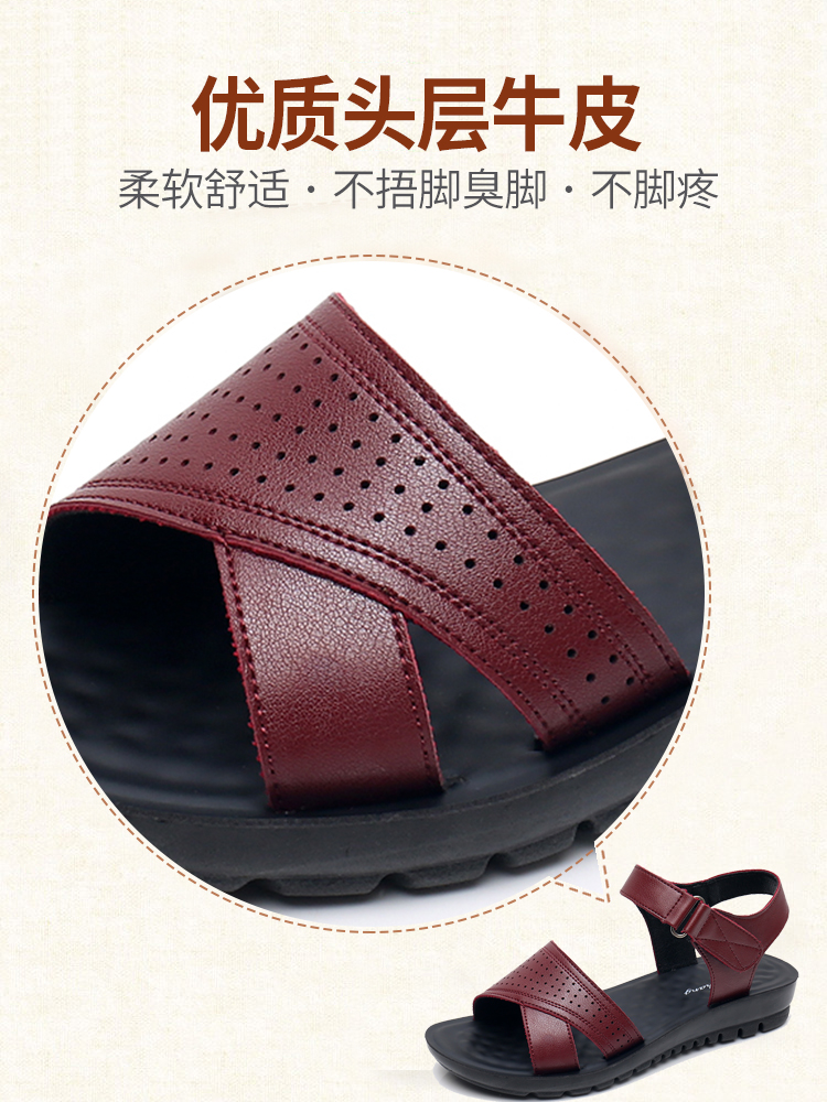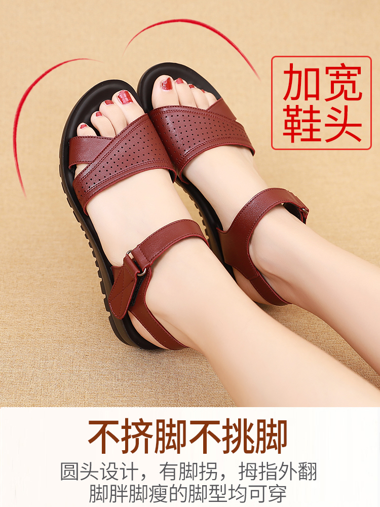 Mom sandals summer flat 40-year-old women's grandma elderly 50 leather soft bottom comfortable middle-aged and elderly middle-aged non-slip