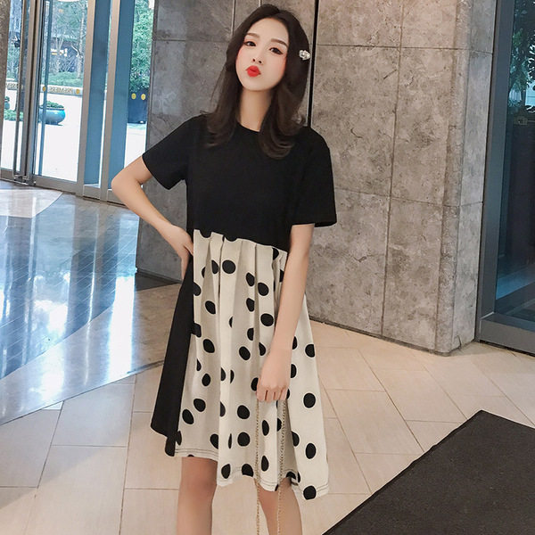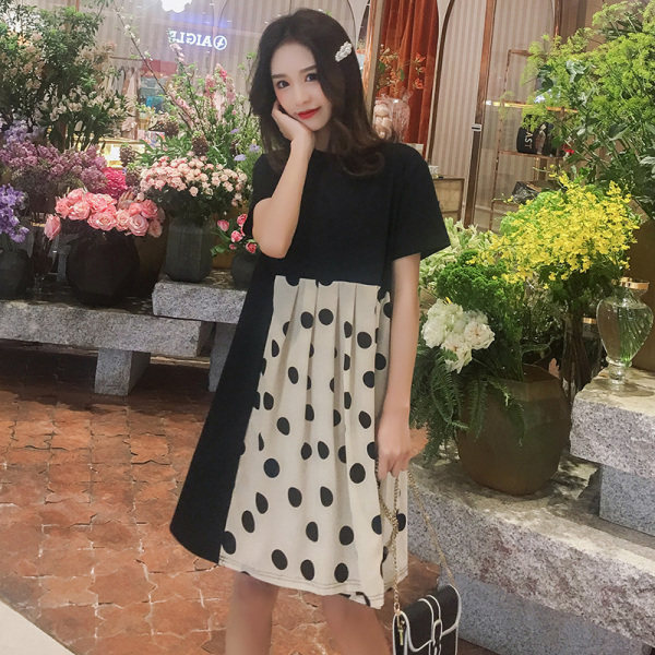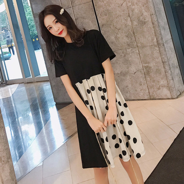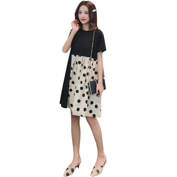 Pregnant Woman Summer Clothing Polo Dot Ocean Dress 2022 New Short Sleeves Splicing Fashion Summer Dresses Small Sub Loose Blouses