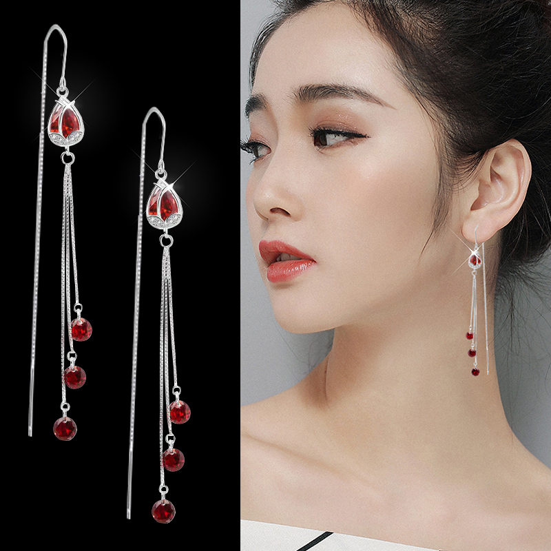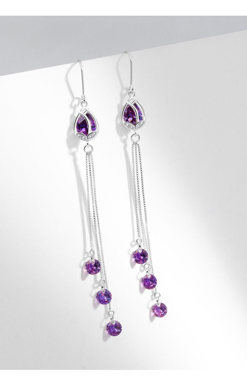 s925 Pure Silver Long Version Purple Tulip New Flow Suearrings Women's Net Red Popcorn Temperament Anti-Fashion Earrings