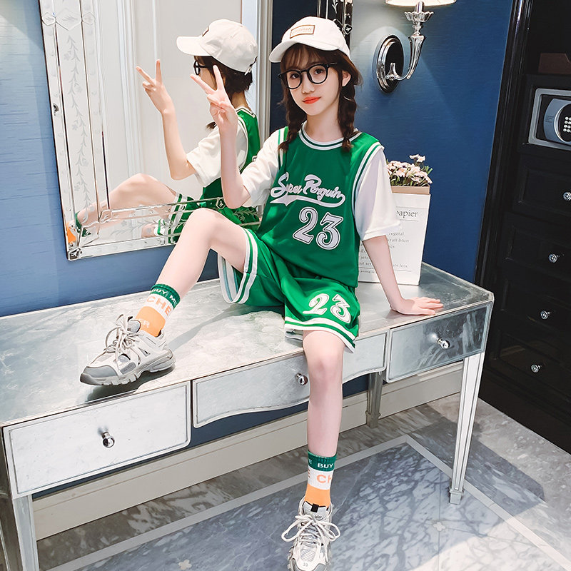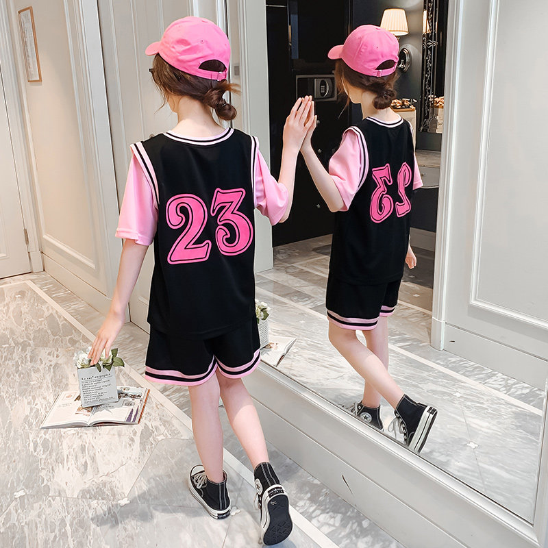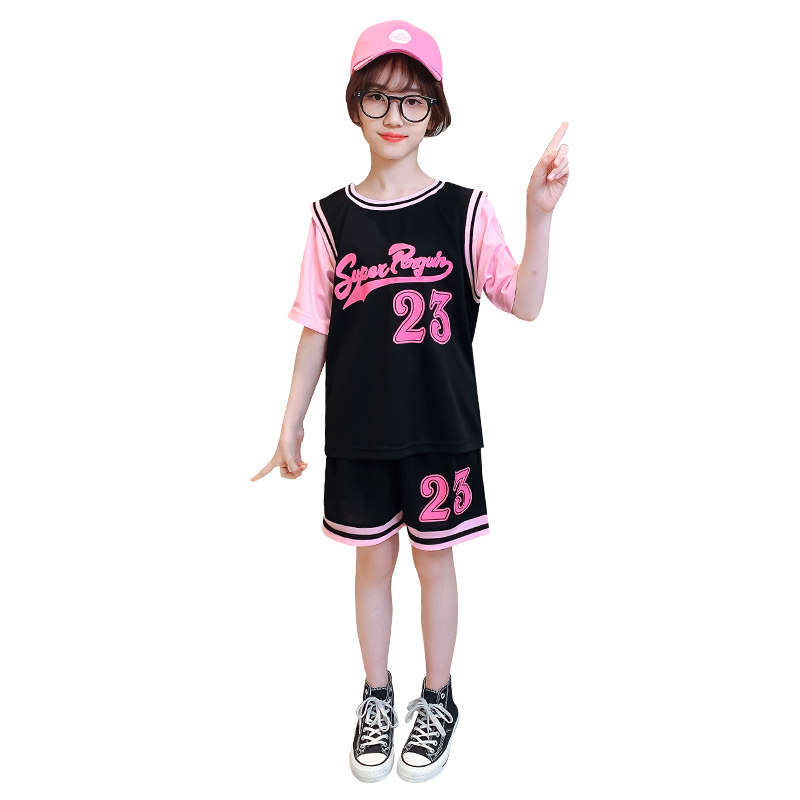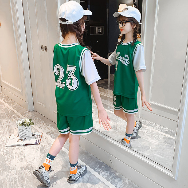 Sports suit girls summer basketball clothes two-piece thin summer clothes children's short-sleeved shorts quick-drying ball clothes loose