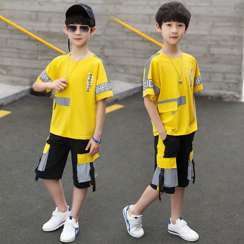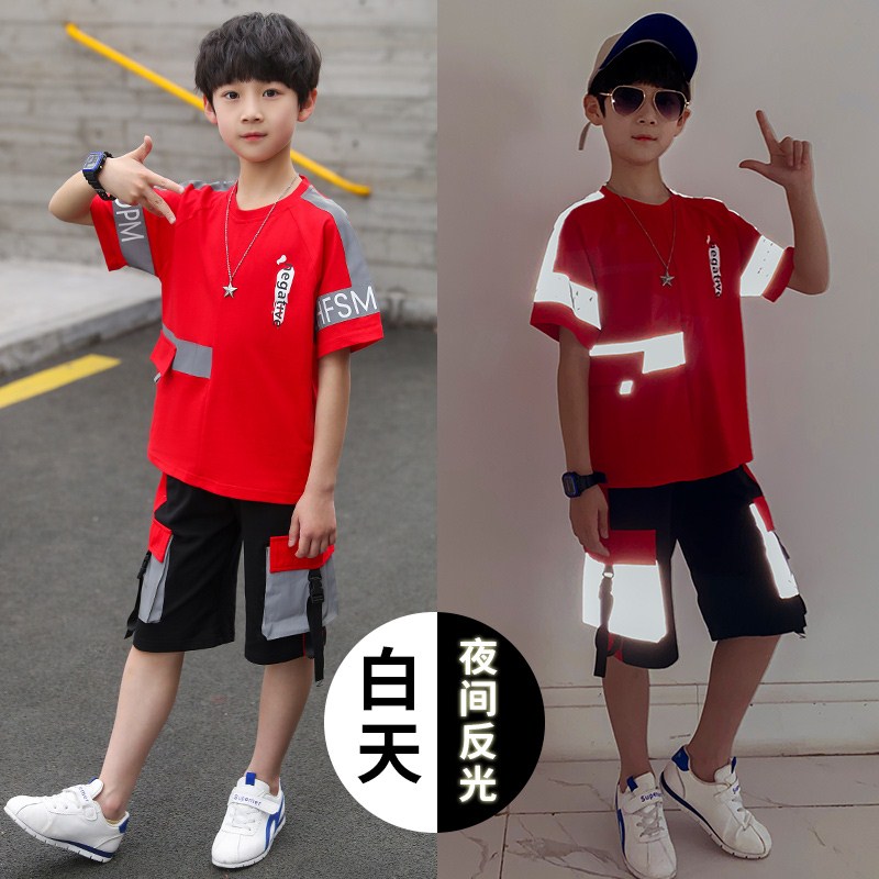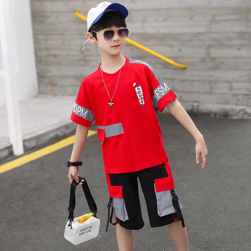 South Korean boy's summer clothing suit 2022 new CUHK couturnal short-sleeved T-shirt boy sports casual two-style
