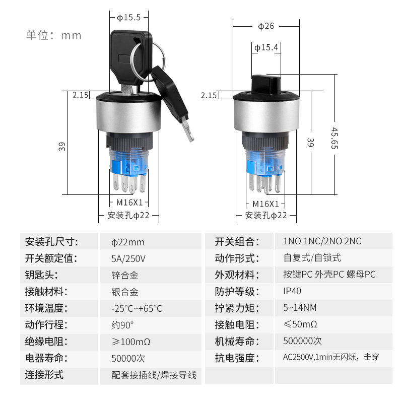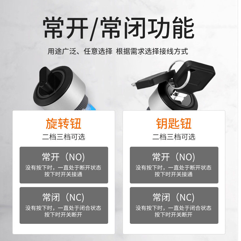 22MM key button 2 bits, one open and one closed 22MM key button 2 bits, two open and two closed 22MM key button 3 bits, two open and two closed 22MM rotary button 2 bits, one open and one closed 22MM rotary button 2