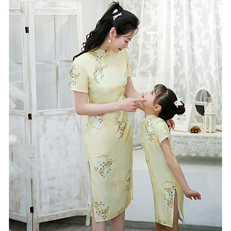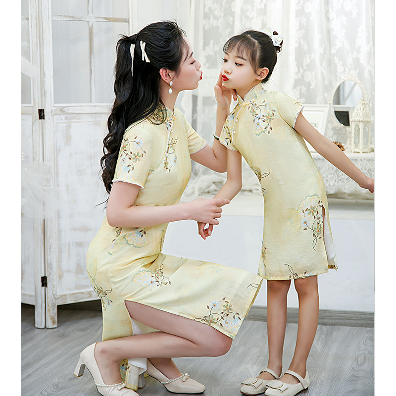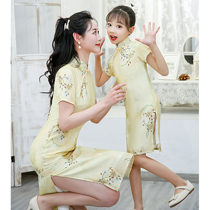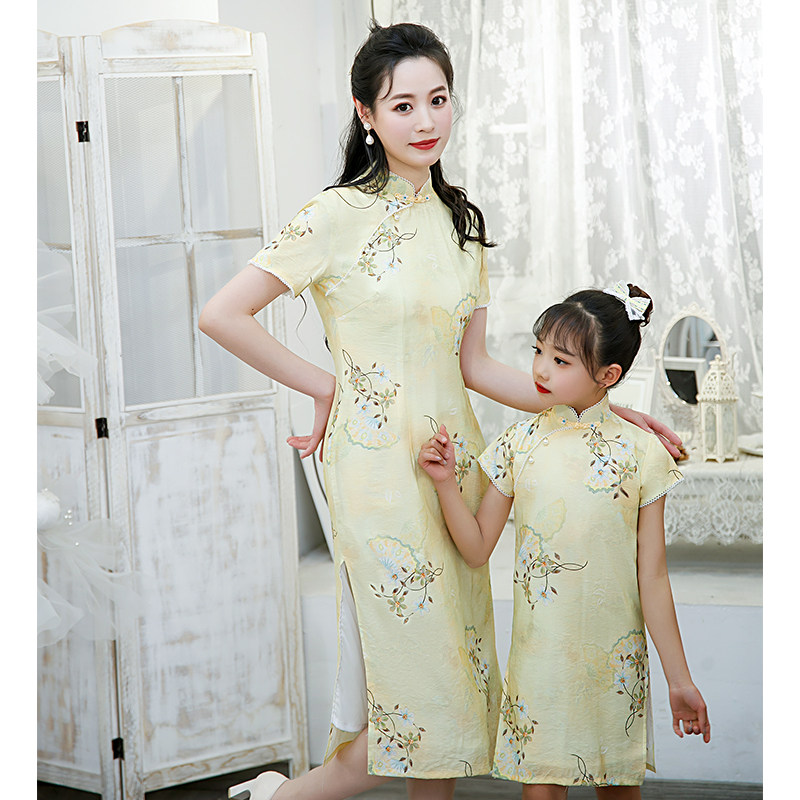 Pro-Son Dress Qipao Mother Woman Foreign Dress 2022 New Summer Retro China Wind Thin Cotton Twist Dresses Yellow