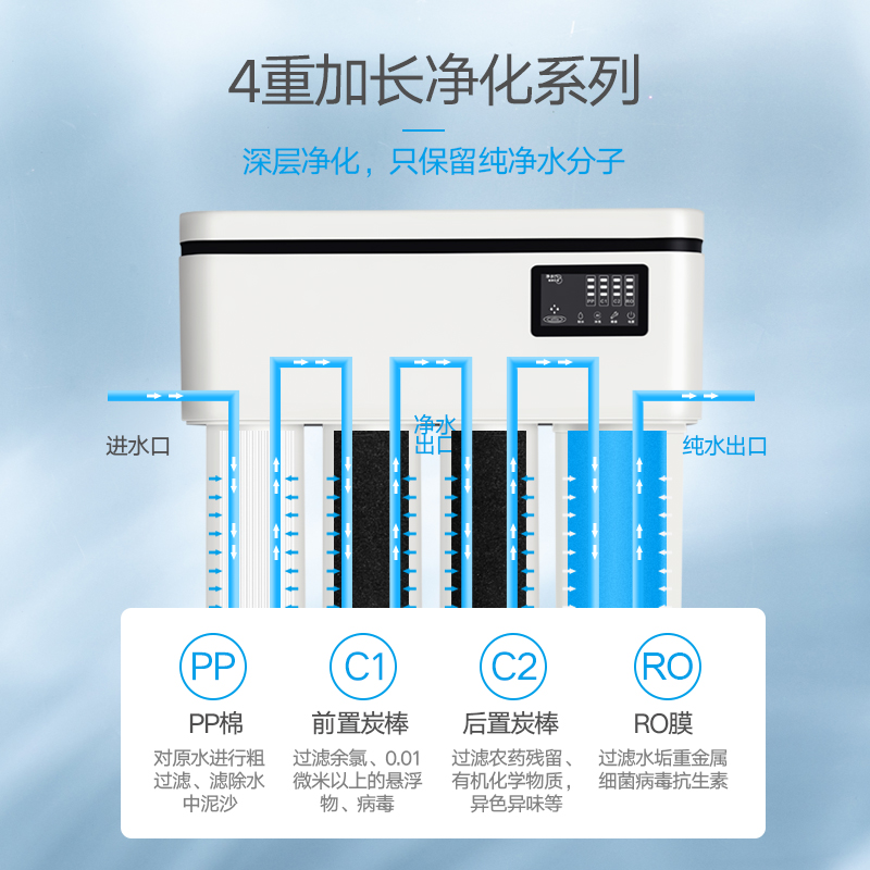 Jinxianquan 400G four-legged water purifier home kitchen filter RO reverse osmosis pure water machine large flow direct drinking