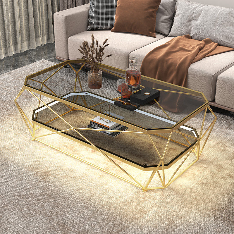 Tea table light extravagant modern small family style living room home table tempered glass rectangular minimalist Nordic Fashion High sense