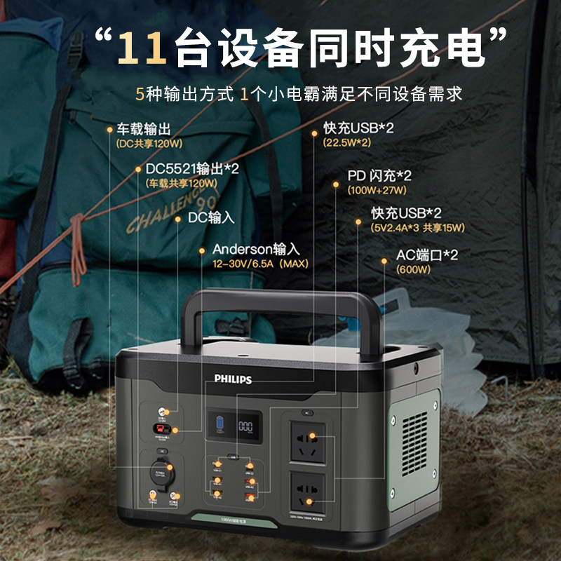 Philips Lingui PLUS1000W Outdoor Mobile Power 220v High-power High-capacity Storage Power Supply for Room Vehicle Self-driving Camp in the wild Camp Vehicle Responsible Power Stop Battery