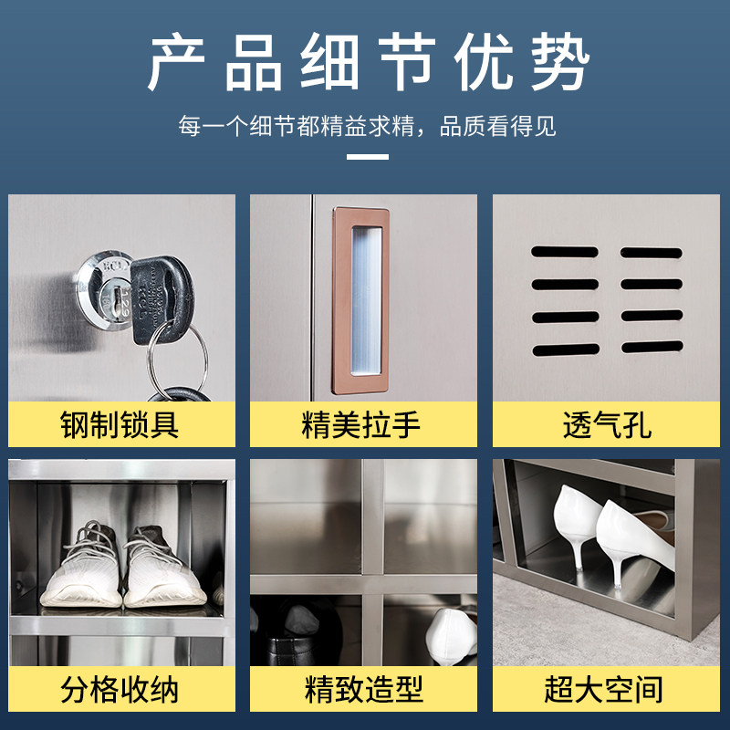 Stainless steel workshop employee shoe cabinet food factory dust-free laboratory single-sided shoe stool hospital multi-grid locker