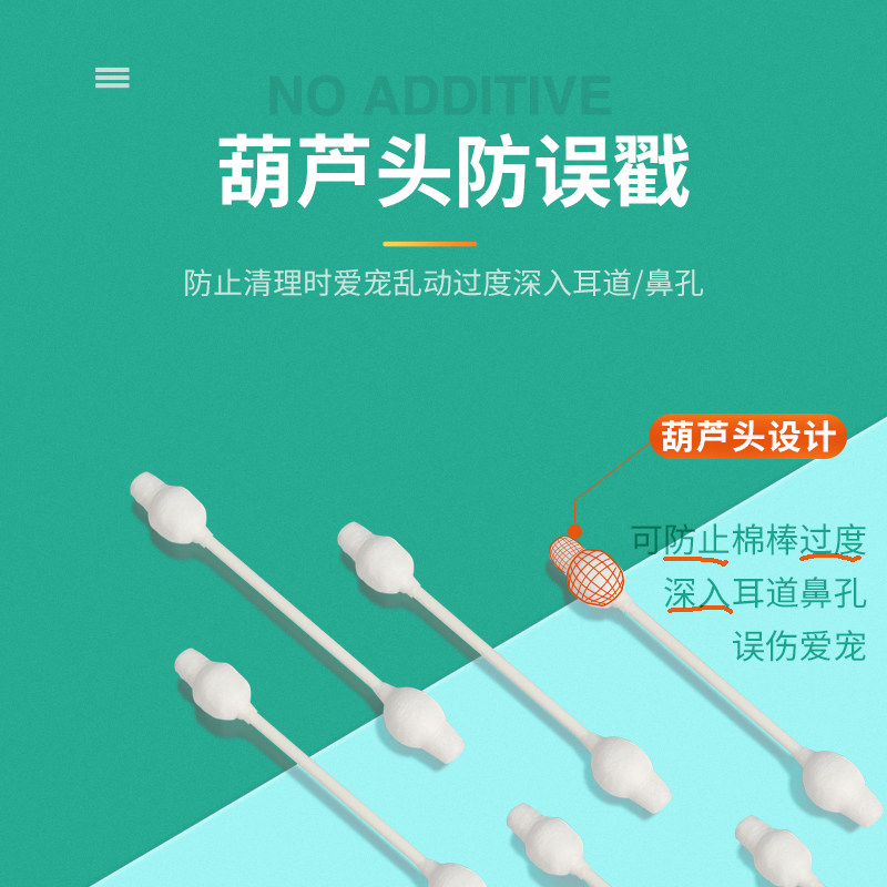 It's lucky to be a good luck TKOKY pet wash ears double head spherical cotton stick cotton stick Puppy kitty ear canal cleaning supplies