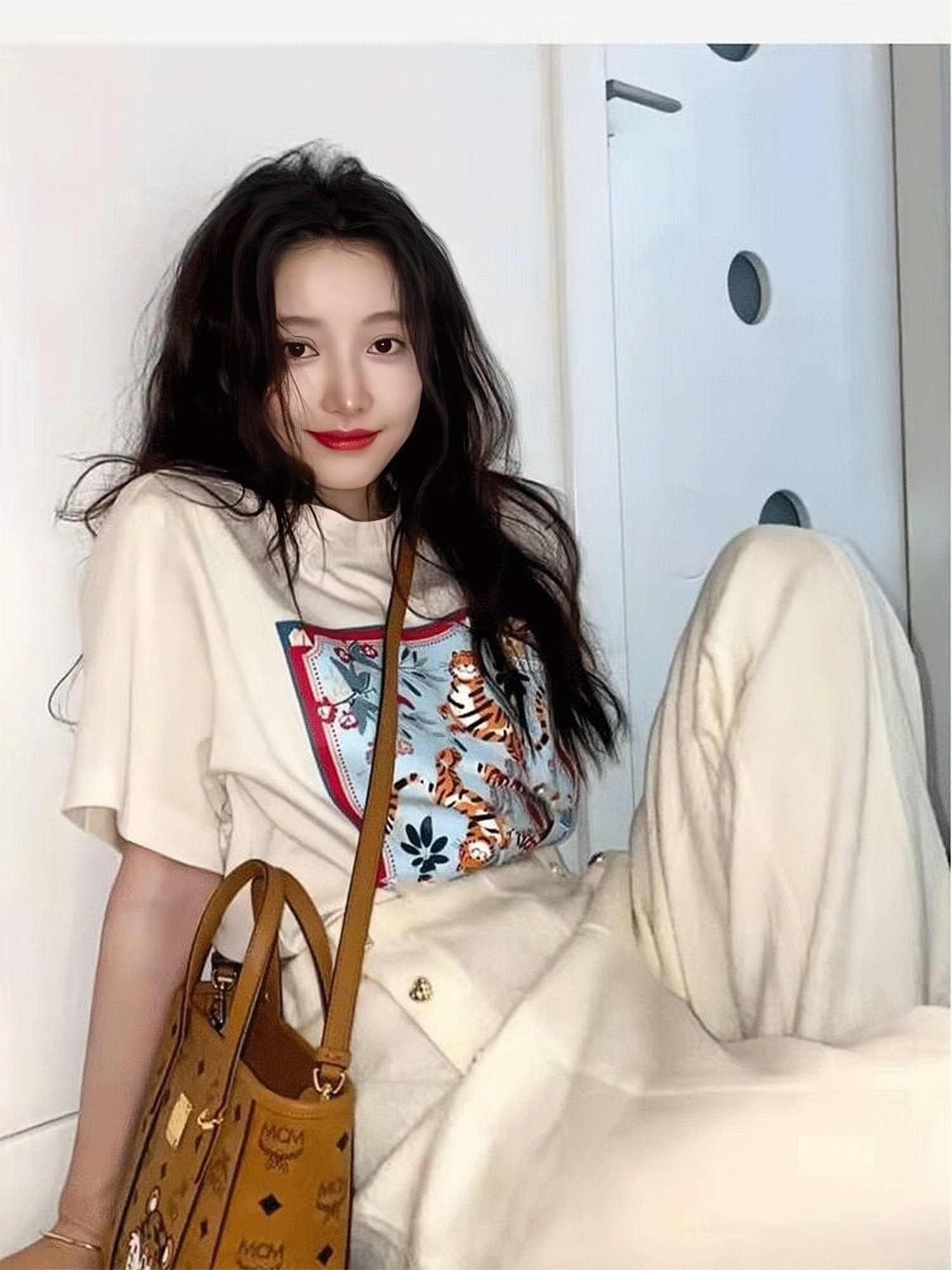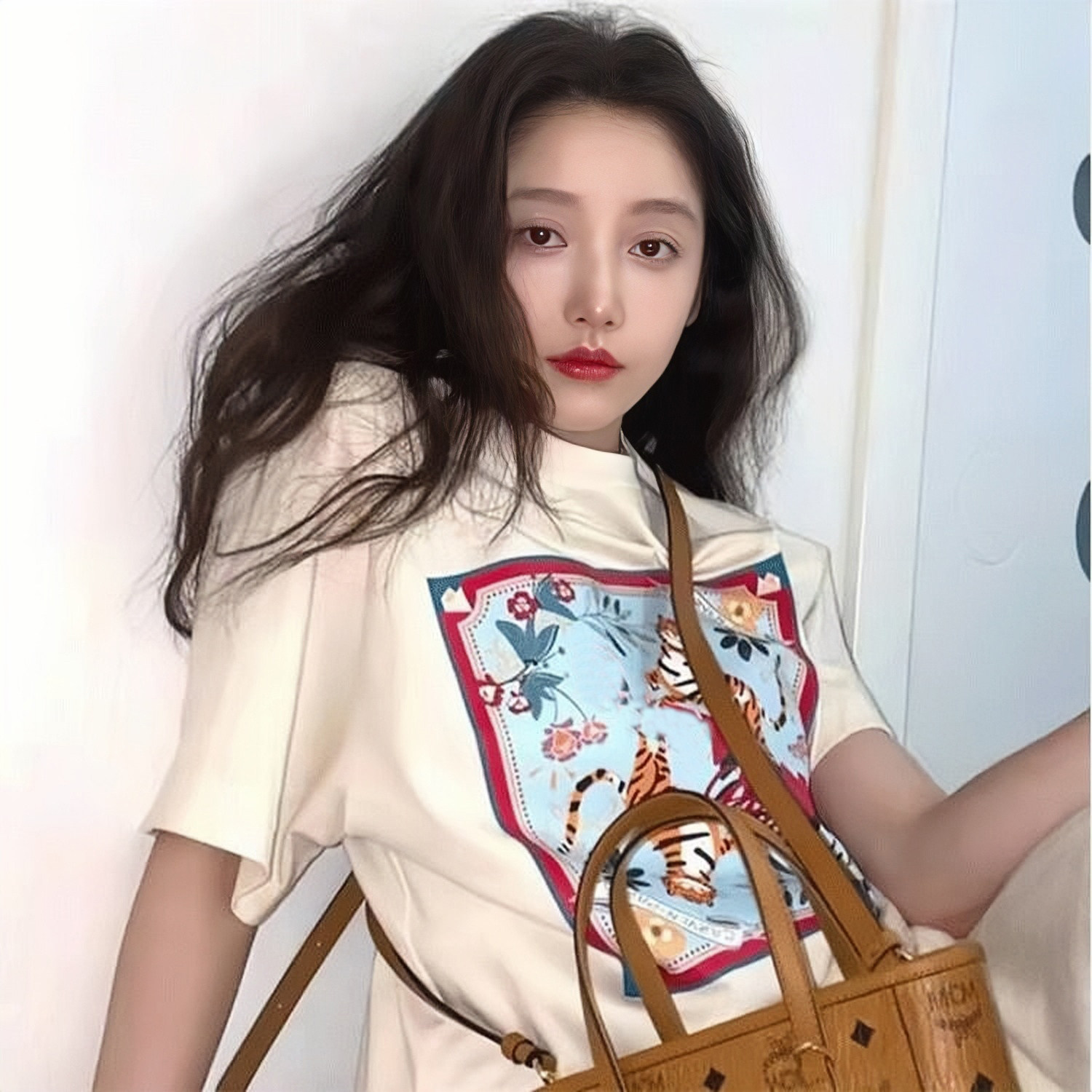 Ginger Jeanne stars the same T-shirt woman 2022 Summer new Ben life Tiger printed milk oil color short sleeve blouse