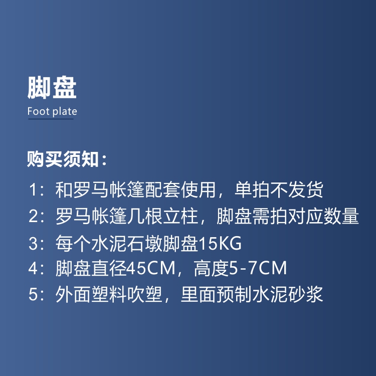 "Foot Plate" needs to be photographed with the Roman tent at the same time. Single-shot foot plate will not be shipped
