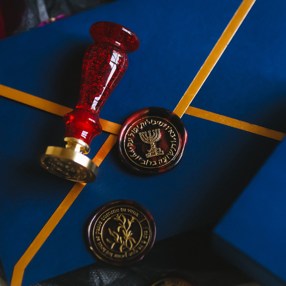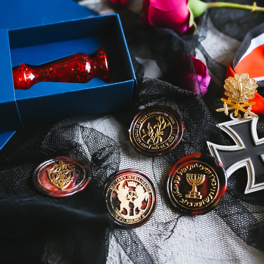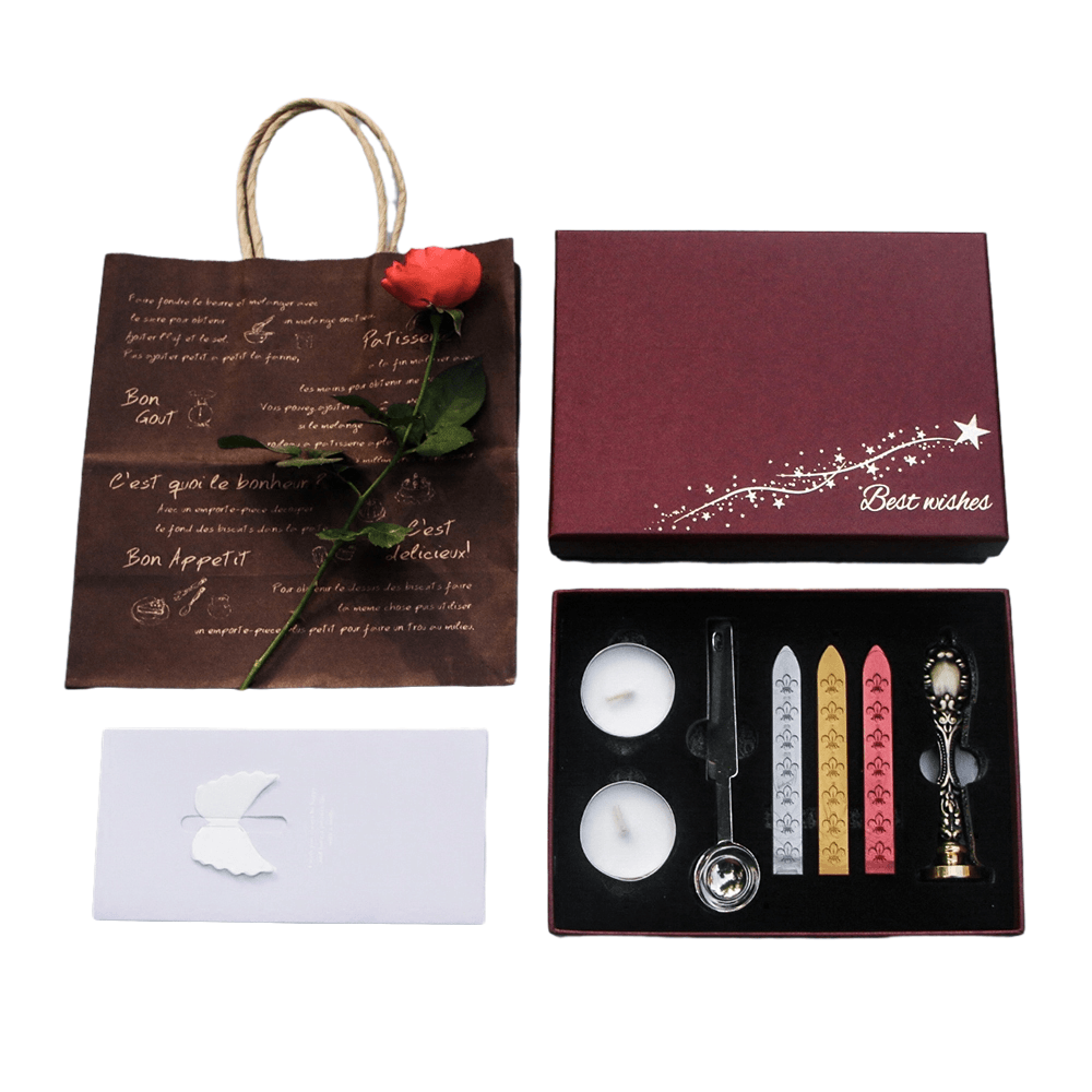 Copper color printing stand a melting pot A wood handle silver spoon 10 white wax French blessings Copper head French blessings Iron handle small lane gift box French blessings metal handle red gift box Mossad copper head