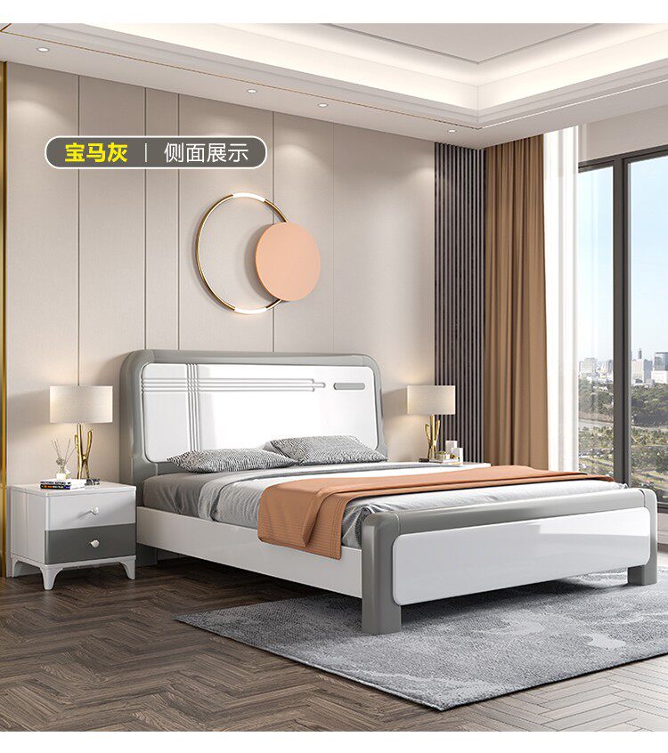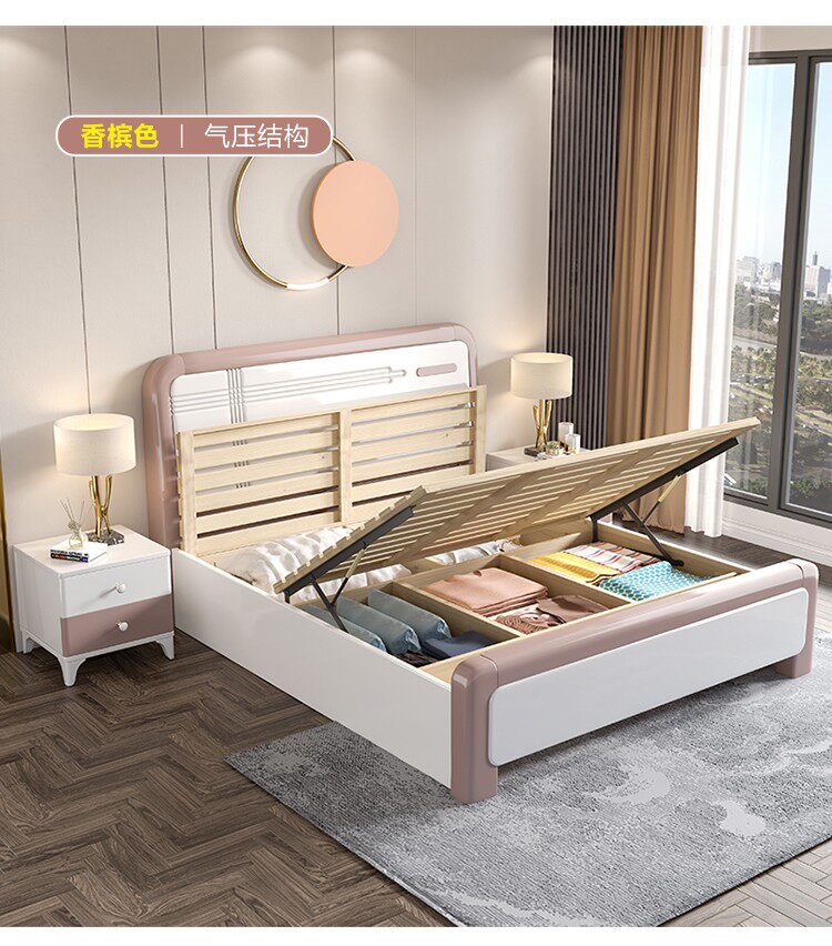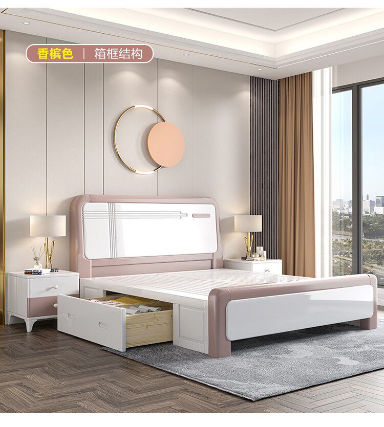 Solid wood bed modern minimalist master bedroom 1.8 meters wedding bed Nordic style light luxury high box storage king bed 1.5 double bed