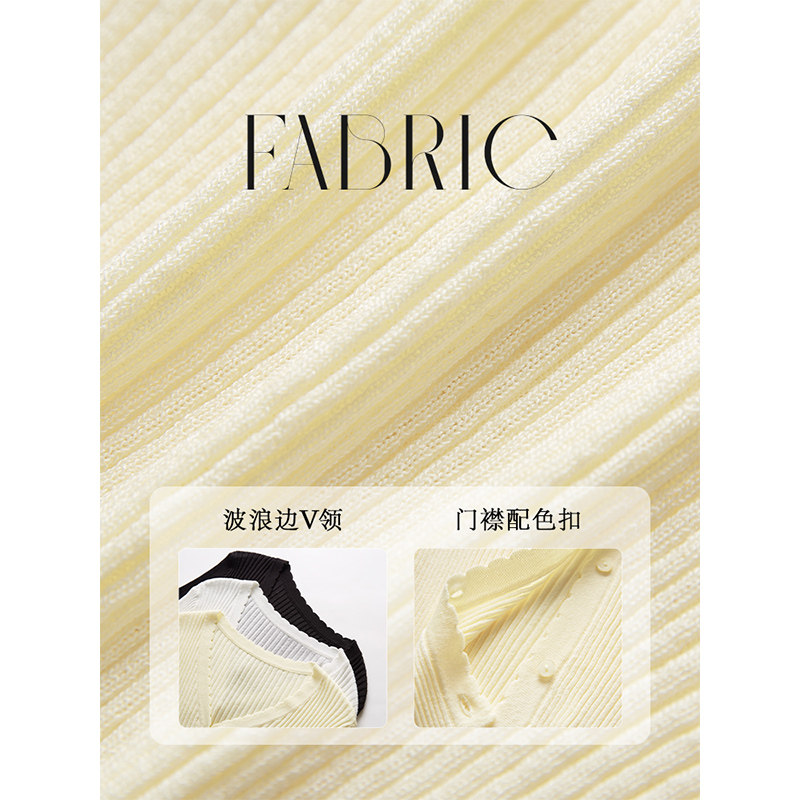 Red Cuff Yellow Knit Cardiovert Summer 2022 New Women's Loaded Wave V Collar Sweet and thin 100 Lapped Temperament Blouse