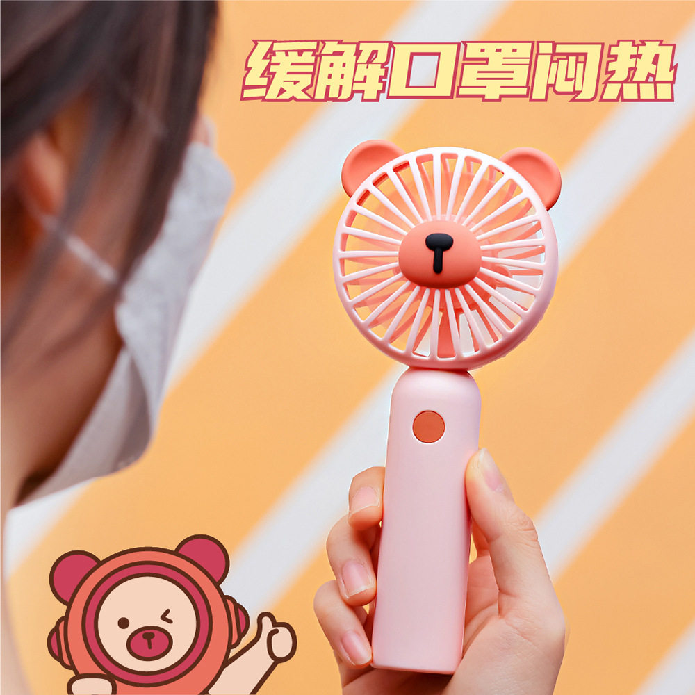 New trendy cool bear handheld small fan USB charging student dormitory cute portable portable desktop fan
