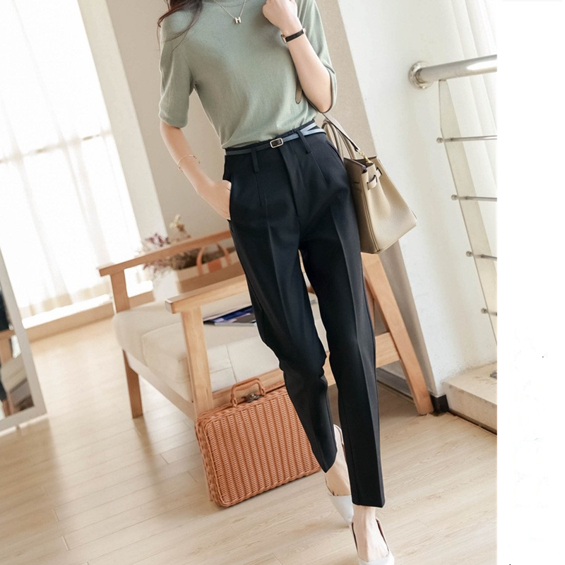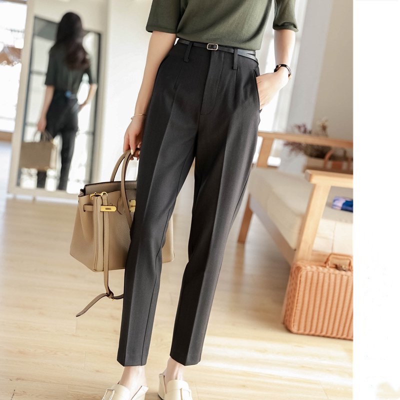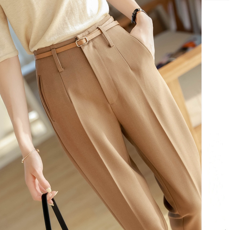 Counter big-name women's clothing 2022 spring and autumn temperament show thin high waist pants Xiaohejia nine points khaki suit pants