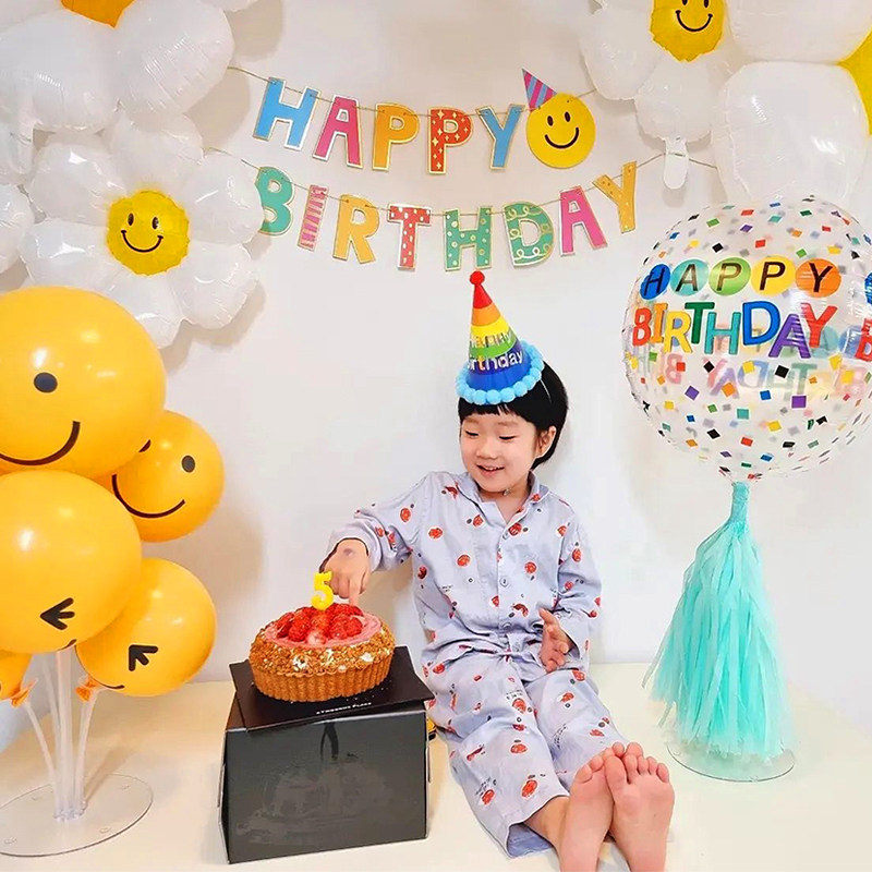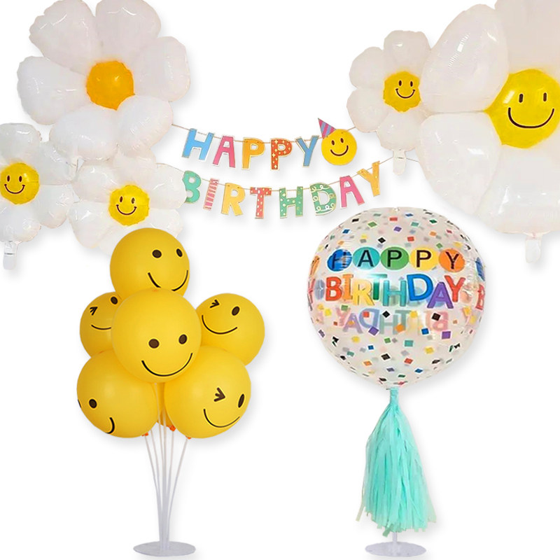 Laughs chicks suit Platinum smiling face Smiling Face table Smiley Face Table Floating Flag Suit Chick FLAG SUIT CHUCKLE Face Tie Arrangement Material Bag Birthday Hanging Cloth Table Flying Suit 4D Laughs Face Colorful Scraps Print Wave Ball