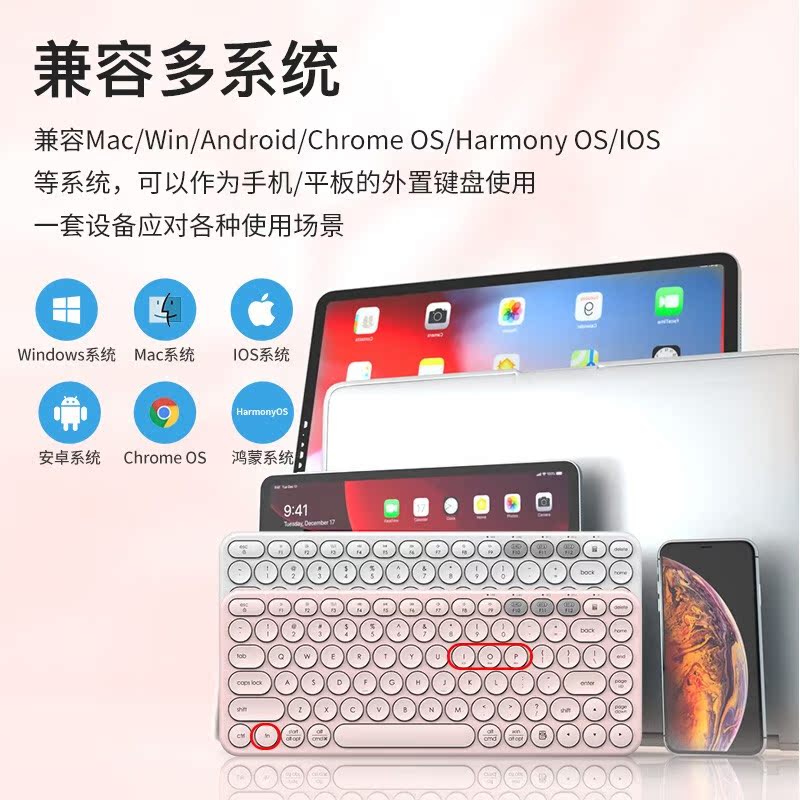 Wireless Bluetooth keyboard BTK1 (three-die black) wireless Bluetooth keyboard BTK1 (three-die white) wireless Bluetooth keyboard BTK1 (three-die pink)