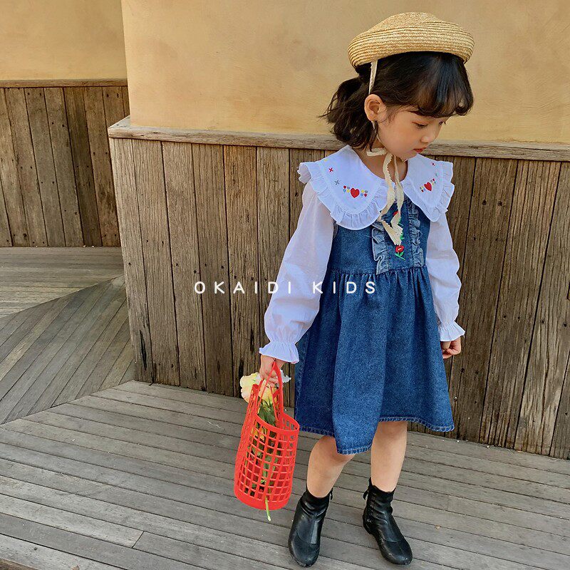Okaidi French girl 2022 new spring and autumn cowboy baby dress girl baby baby dress baby dress relaxed dress