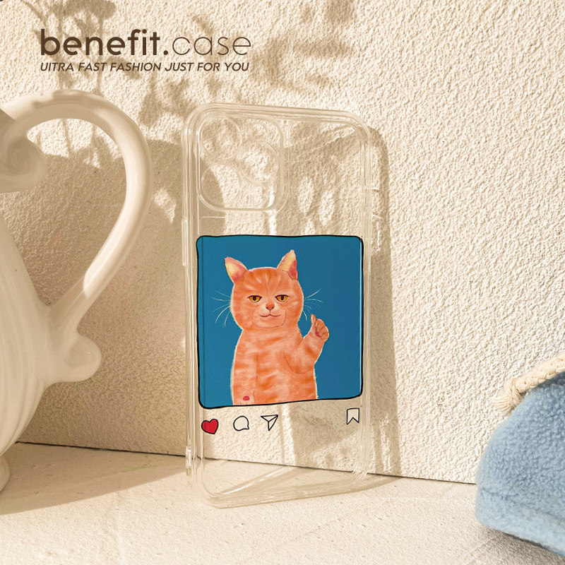 Benefit cute to blame for orange cat applicable apple 13promax mobile phone protection shell iphone12 transparent mini anti-fall xsmax cartoon xr interesting 8