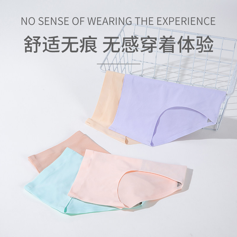 Lady No Marks Underwear Ice Silk One-Piece Antibacterial Crotch Pro-Skin Breathable Triangle Pants 2022 New Mid-Waist Large Size BS